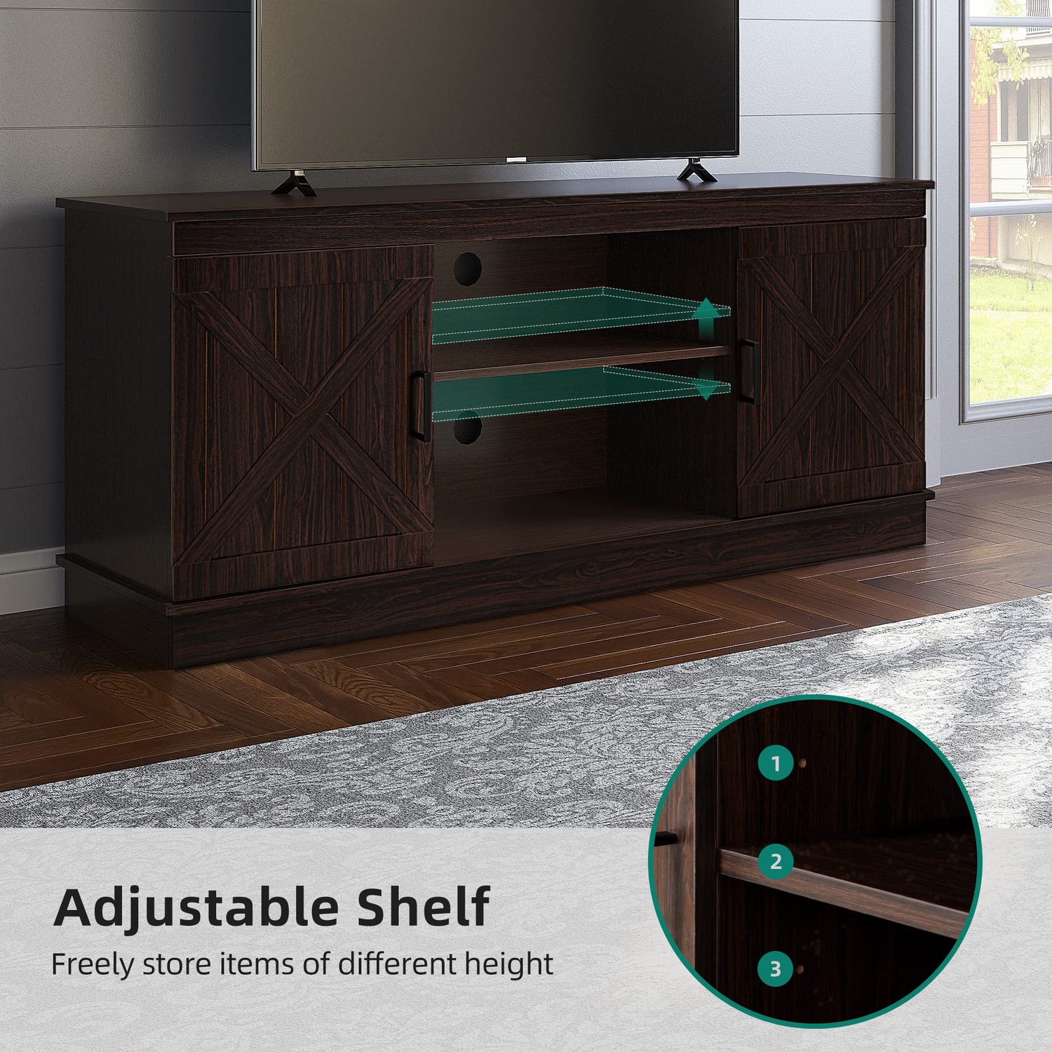 YITAHOME TV Stands for TV up to 65 Inch, Farmhouse Entertainment Center with Double Barn Doors & Storage Cabinets, Rustic TV Cabinet Media Console Table for Living Room, 59 Inches, Espresso