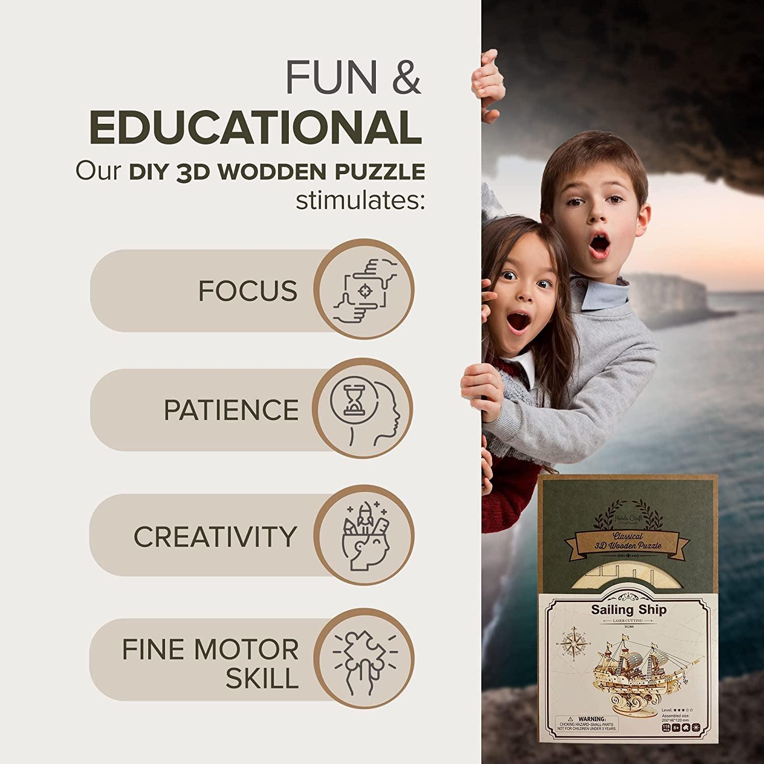 DIY 3D Laser Cut Wooden Sailing Ship Puzzle Kit for Educational STEM Fun