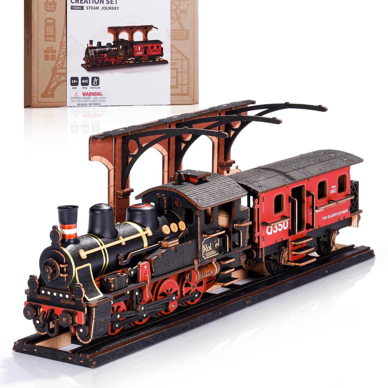 Rolife 3D Wooden Puzzle for Adults, DIY Wood Model Train Sets, Mechanical Vehicle Model Building Kits-Brain Teaser Puzzle Toys with 365 Pcs-Creative Birthday for Kids