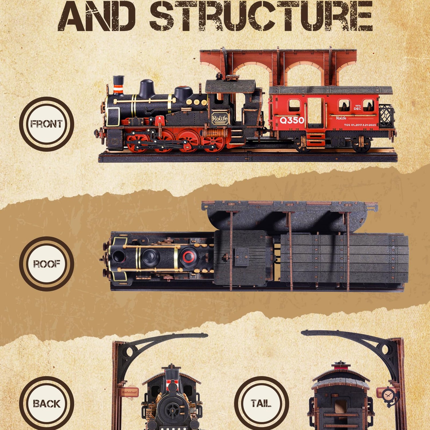 - 【Wooden Minimalist Steam Train】This rolife 3d puzzle that captures the essence of vintage style. With an average assembly time of 3 hours and only 365 pieces, this handmade model quickly transforms into a 14.8×4.45×5.71 inch masterpiece.