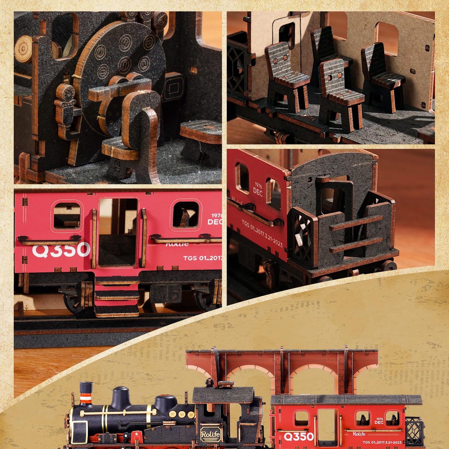 - 【Collection and Decoration Kit】When displayed, this wooden train puzzle fills your room with humanism, evoking the steam era and adding a captivating retro vintage theme.