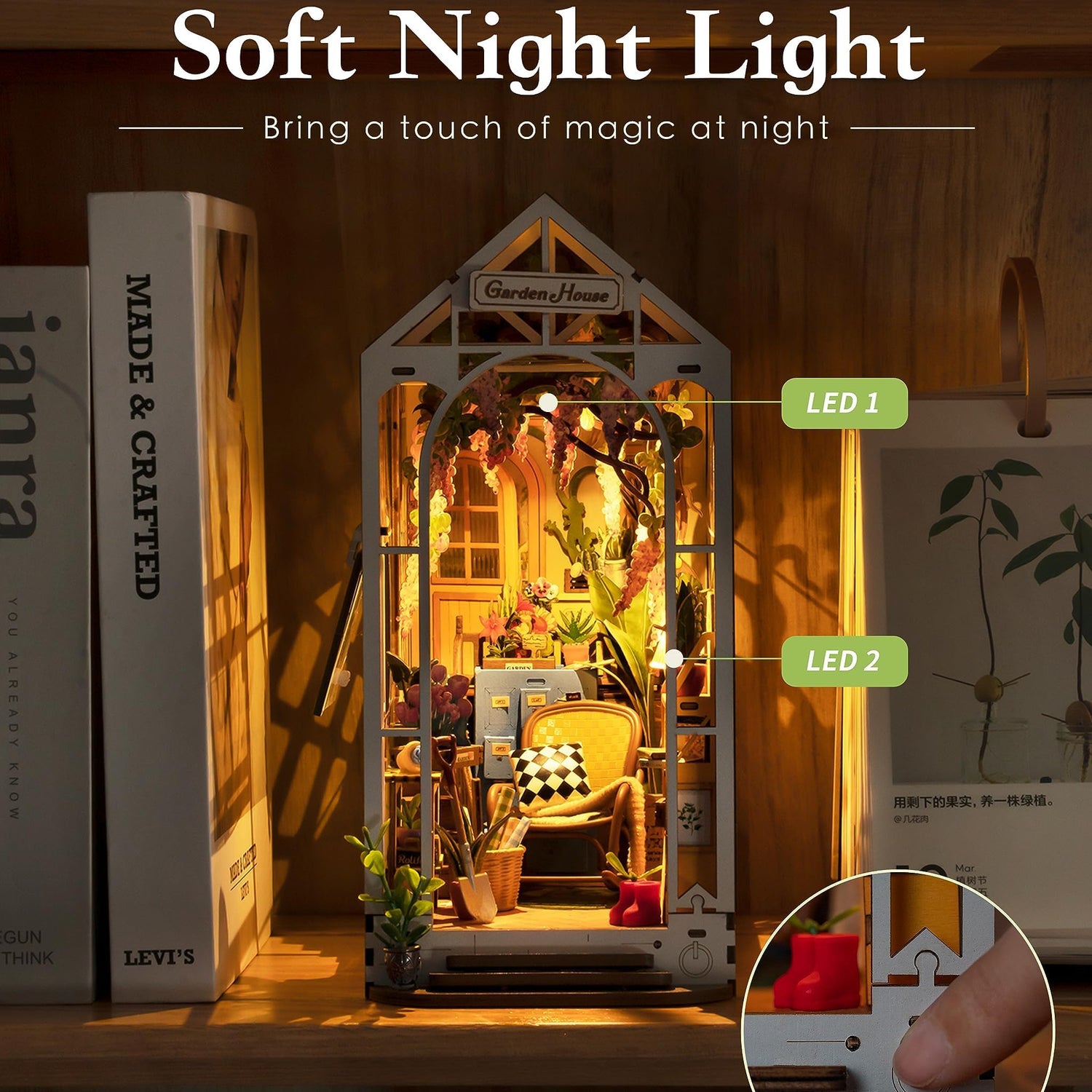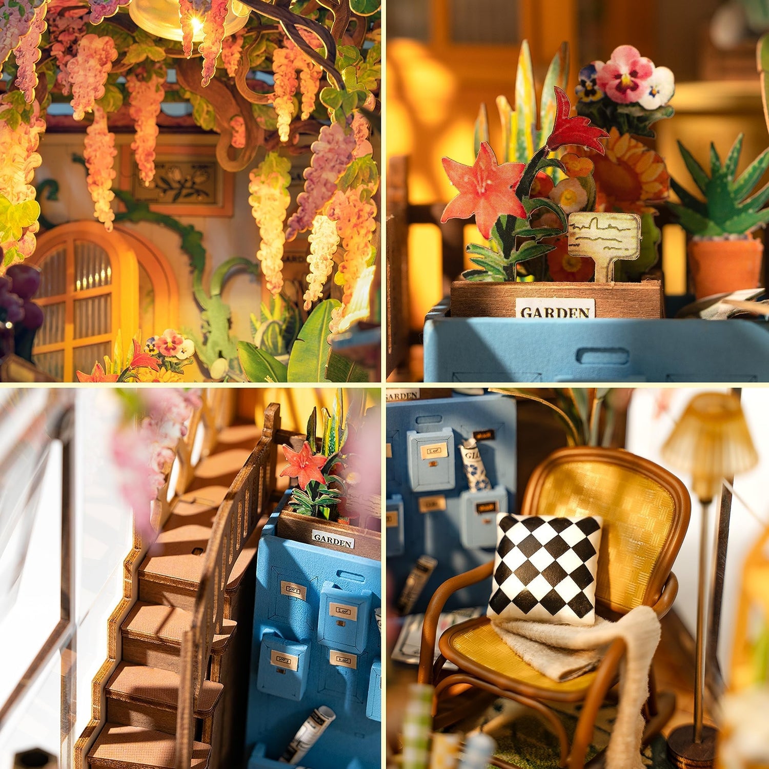 Rolife DIY Book Nook Kits for Adults-Garden House Bookshelf Insert Booknook-3d Puzzle Dollhouse Room Decor for Teen Girls Boys Women Men