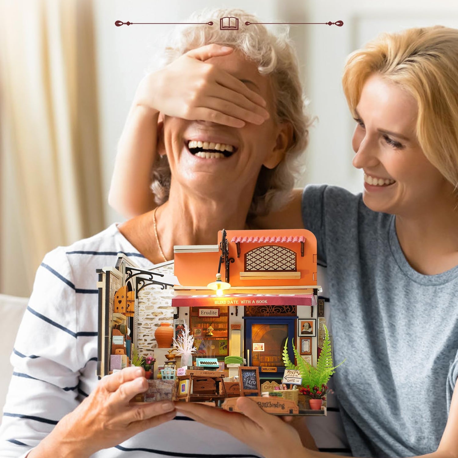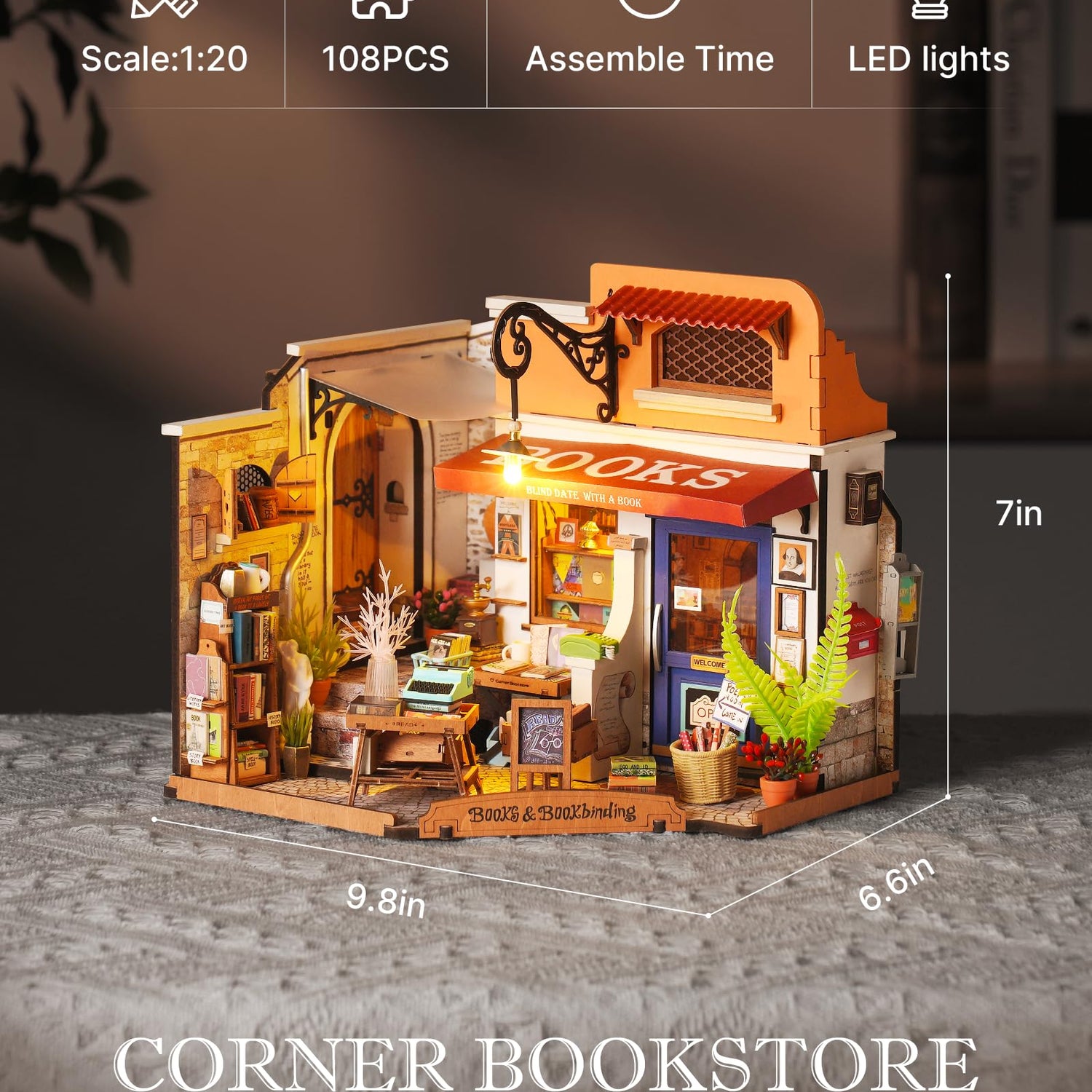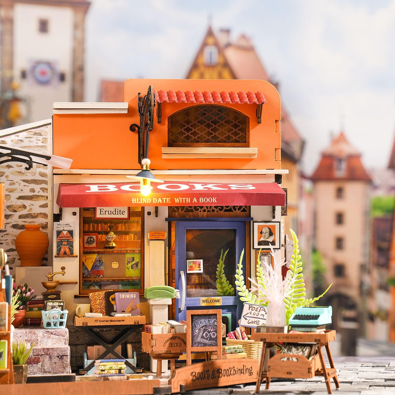 Rolife DIY Miniature House Kit 1:20 Scale Bookstore, Build Mini House Building Kit with LED Lights Craft Kits for Aduls Gifts for Him Her