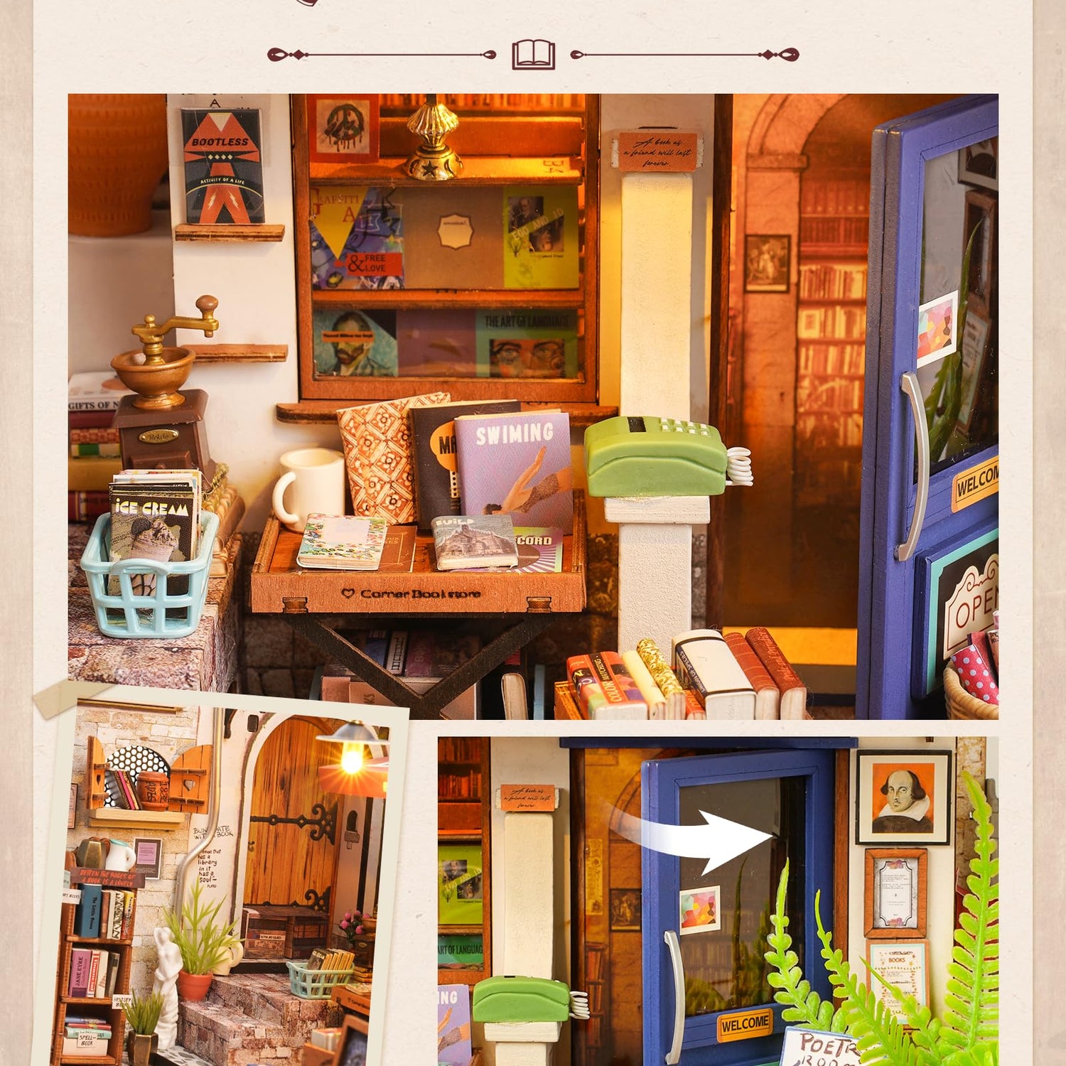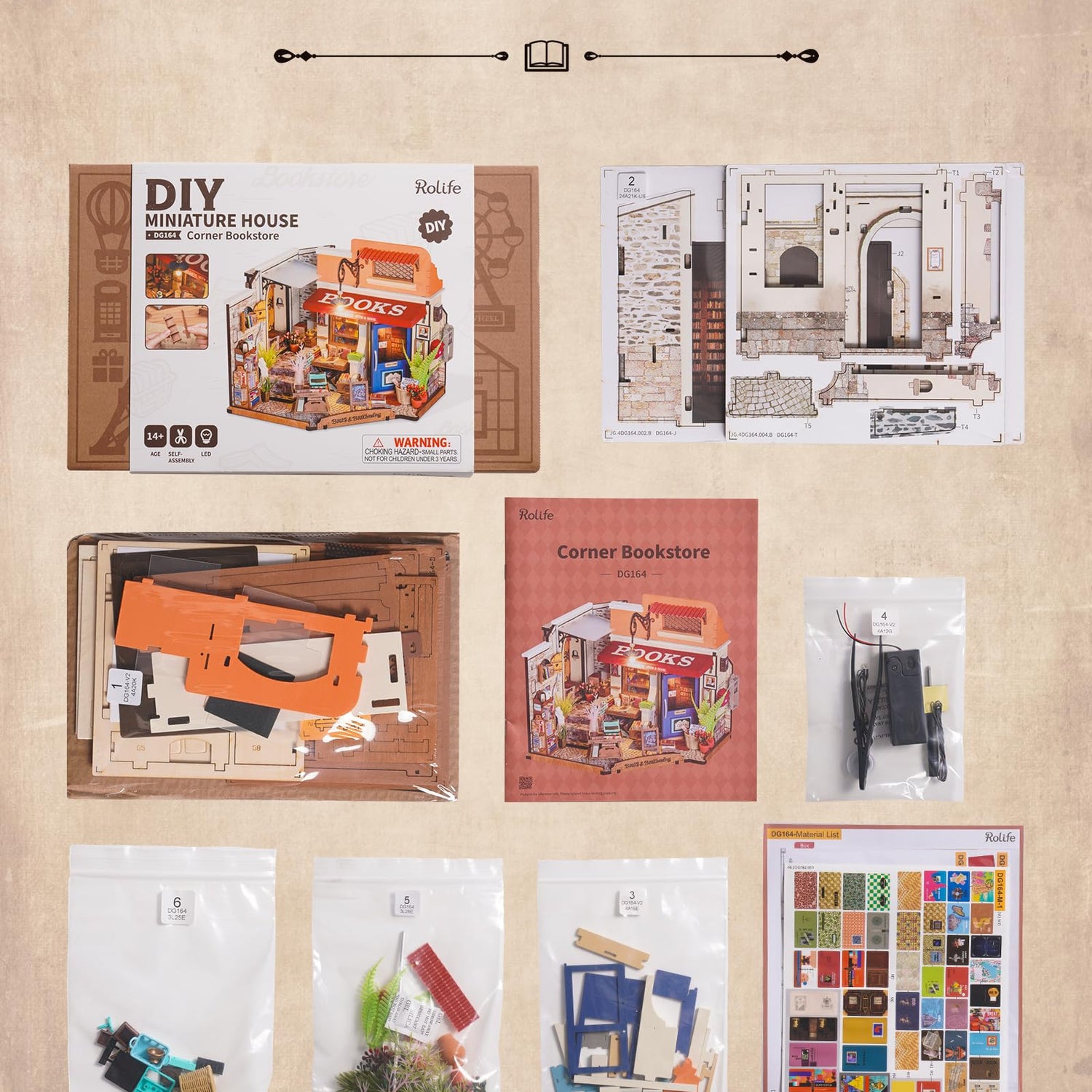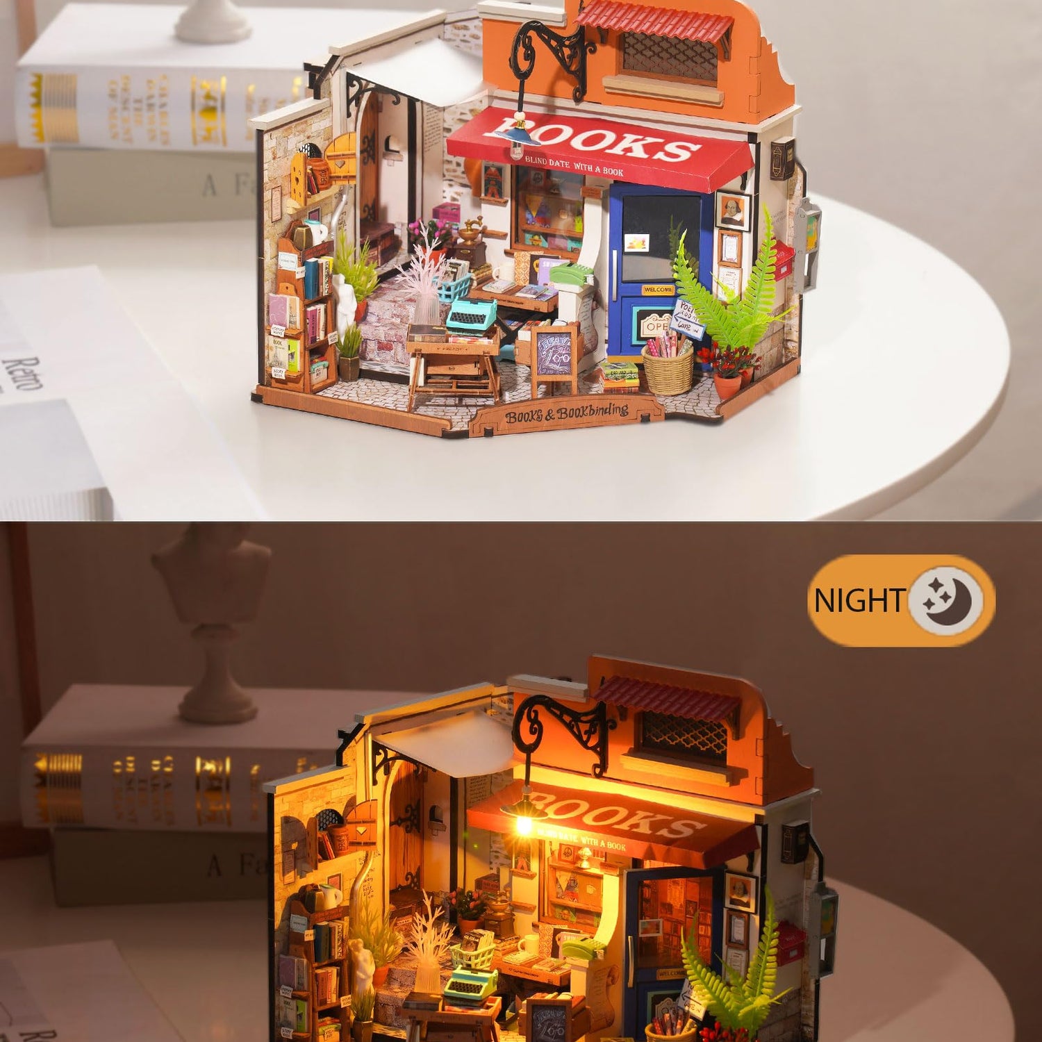 Rolife DIY Miniature House Kit 1:20 Scale Bookstore, Build Mini House Building Kit with LED Lights Craft Kits for Aduls Gifts for Him Her