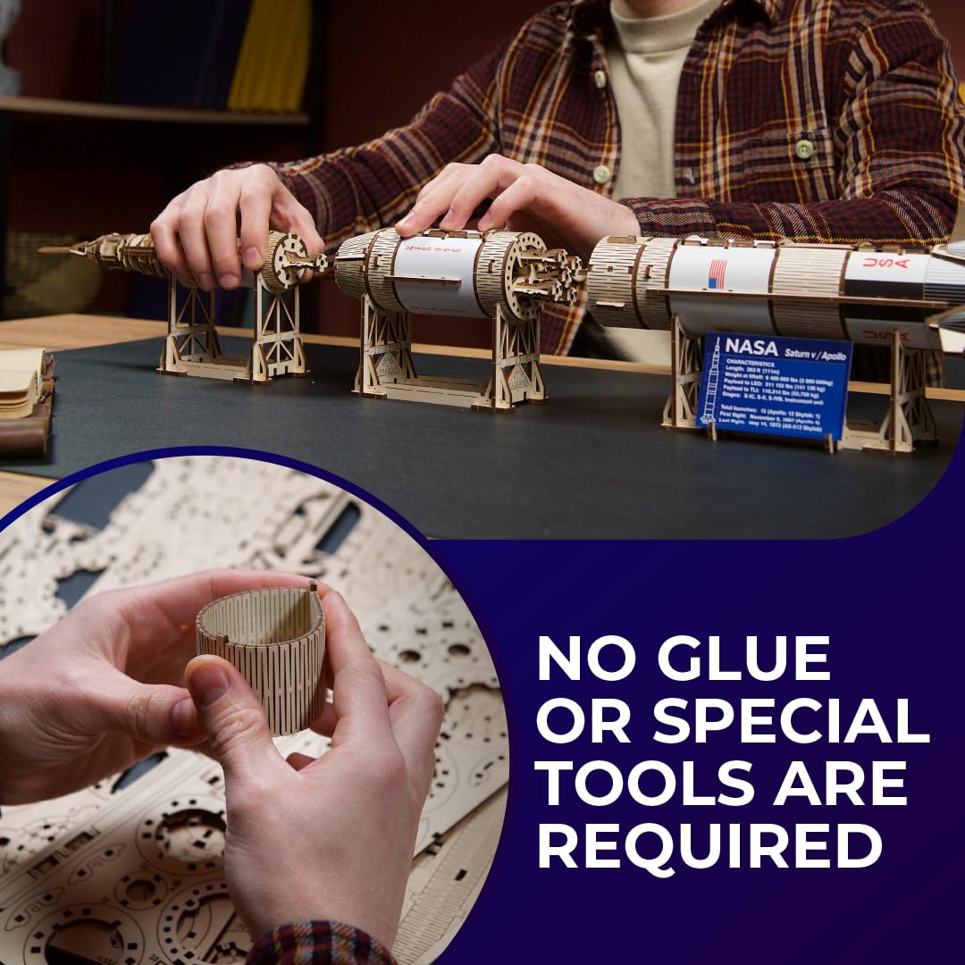 • Ugears Saturn 5 3d model ship kit adult is a 1:170 scale of the greatest mechanical wooden puzzles of space the world has seen