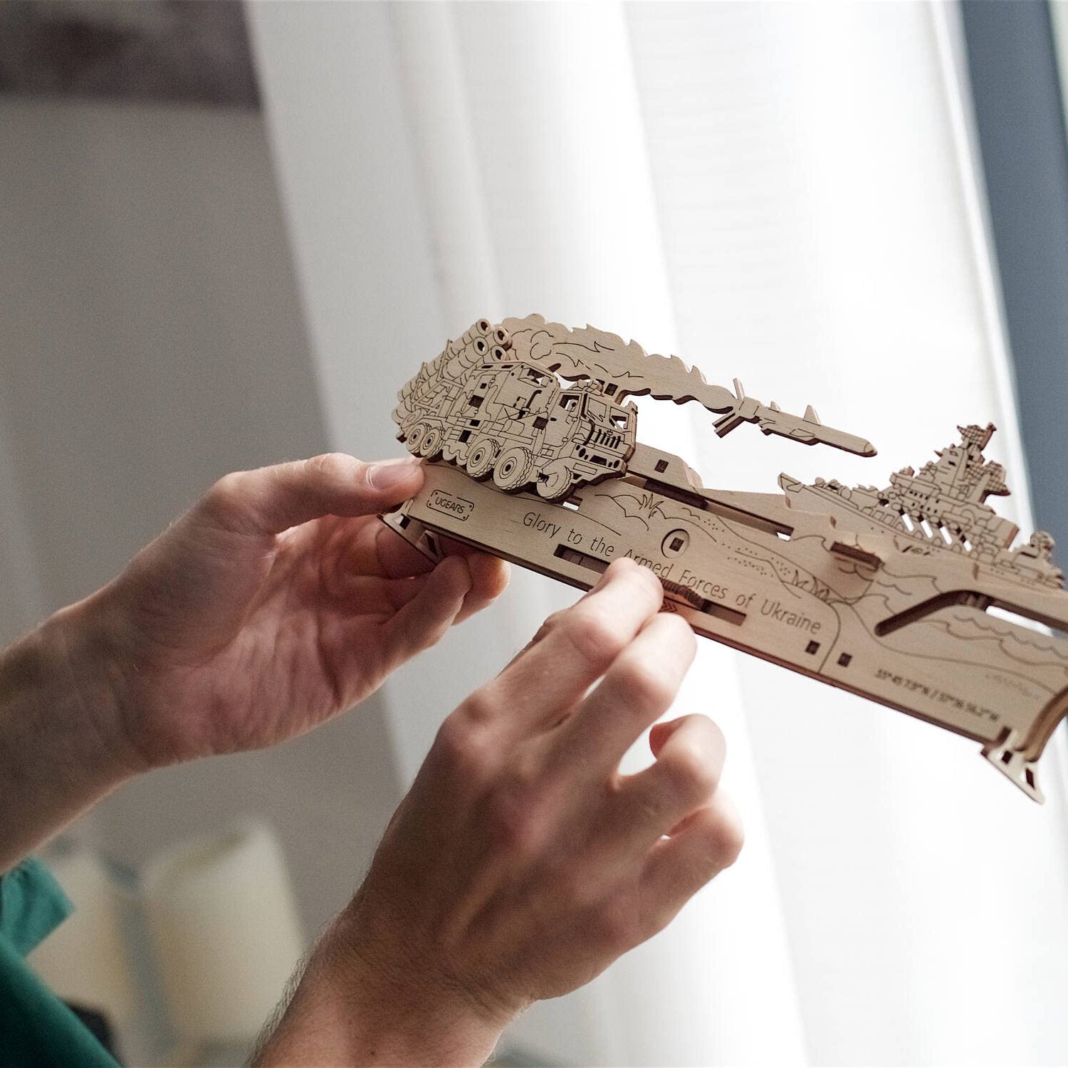 Details: Assemble me. Make the warship gone! The Neptune Mission adds to exclusive Age of Bravery collection by Ugears original desktop 3d puzzles. Why choose this mechanical Neptune mission model puzzle? Everything in the box: The Neptune Mission wooden model is ready to assemble right out of the box - no special tools or glue required. Simply follow the illustrated instructions. All family will enjoy assembling and playing with this model. Support the freedom: Ugears is donating a portion of the proceeds from each model sold on its international website toward Ukrainian relief, so purchasers of this new special series of Ugears mini-models can know they too are supporting the Ukrainian people Beautiful gift: The Neptune mission mechanical 3D puzzle is a fun entertainment, an original gift, and an inspiring piece of home decor. It is also a piece of history for model builders everywhere, commemorating a standout episode of the conflict. Excellent starter model: Our engineers designed the Neptune mission mechanical 3D puzzle as well as other models in the exclusive Age of Bravery collection for ease of assembly. Glory to the people of Ukraine! Glory to Ukraine!