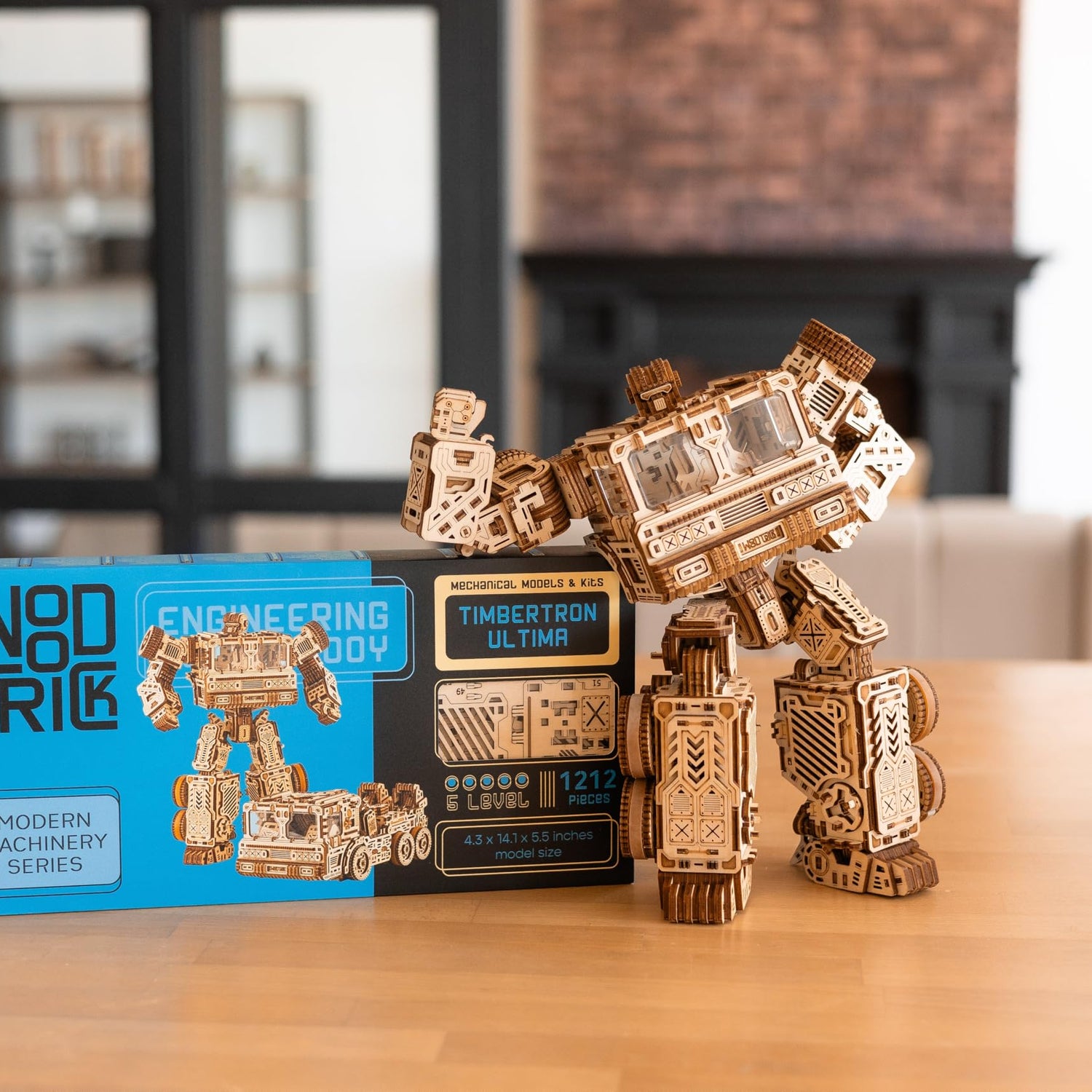 • NATURAL WOOD - Timbertron Ultima is a robot building kit that features the unique option of transforming into a truck model. This wooden robot puzzle has an impressive 1212 pieces, comes with a detailed manual, and requires no glue for full assembly. Dimensions: 4.3*14.2*5.5 inch
