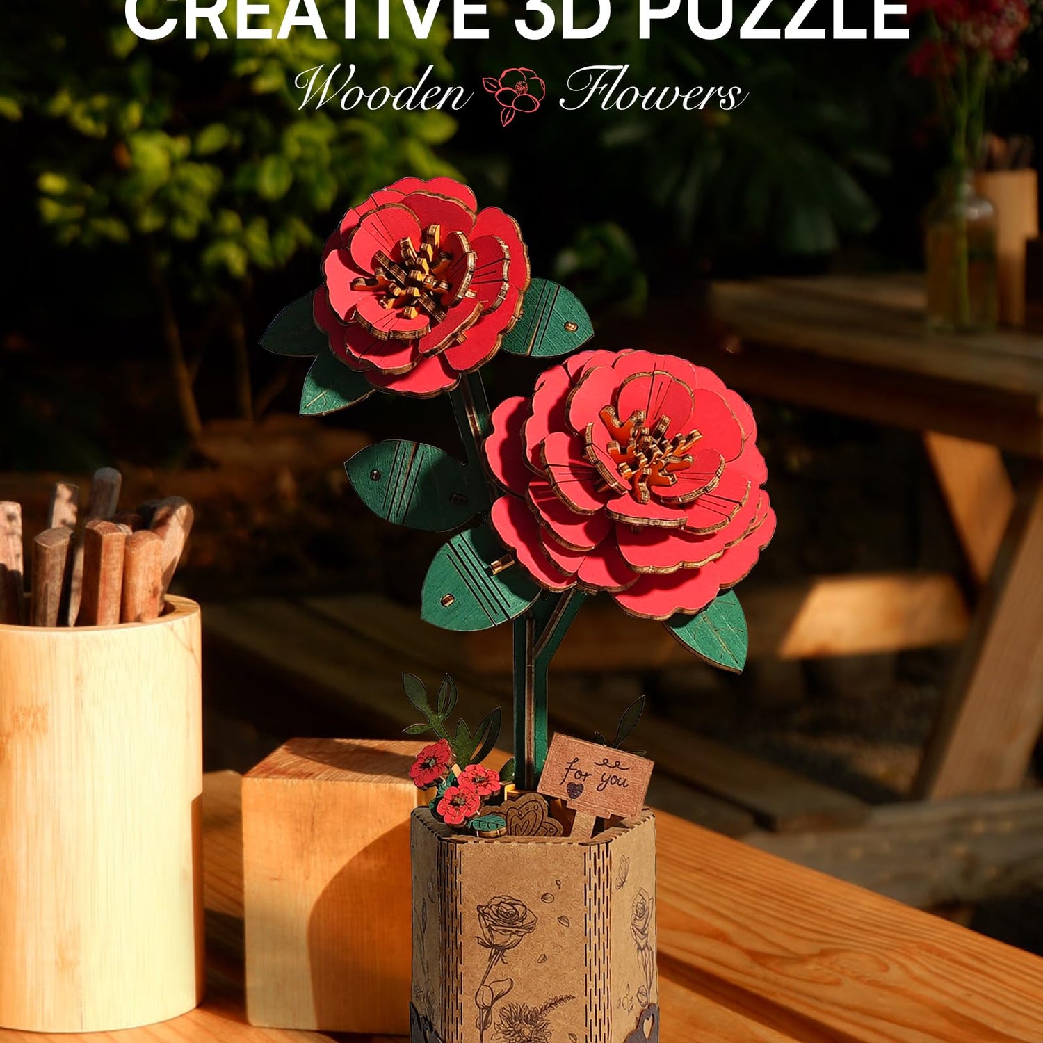 • đŸŒș【Wooden Puzzle Red Camellia】Red camellia symbolizes natural beauty, modesty and purity, and represents ideal love. Send the Wowood 3d wooden puzzle red camellia to your favorite person to signify that love never falls.