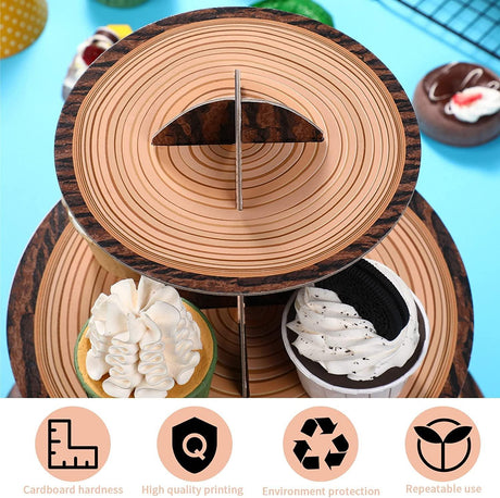 Wood Birthday Party Supplies, 3 Tier Cardboard Wooden Cupcake Stand Tower