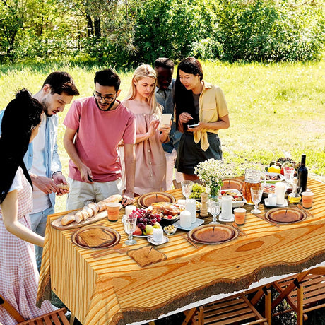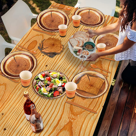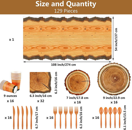 129 Pieces Hunting Birthday Party Supply Camping Party Plate Tablecloth Cup Napkins Wood Slice