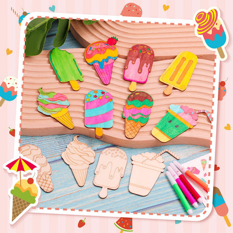 Pack of 24 Unfinished Wood Birthday Cake Cutouts by Blank Wooden DIY Cake Treat Dessert Shapes