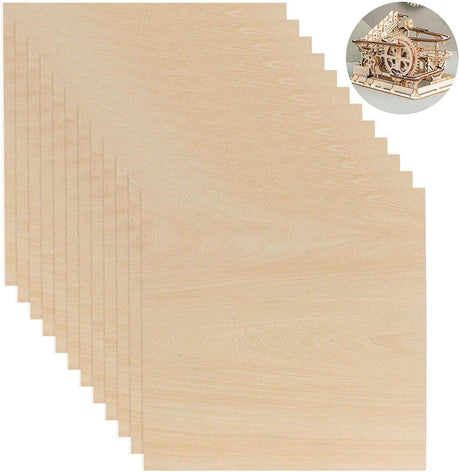 12 Pack Basswood Sheets 1/8 X 11.8 X 11.8 Inch Plywood Board, Thin Natural Unfinished Wood
