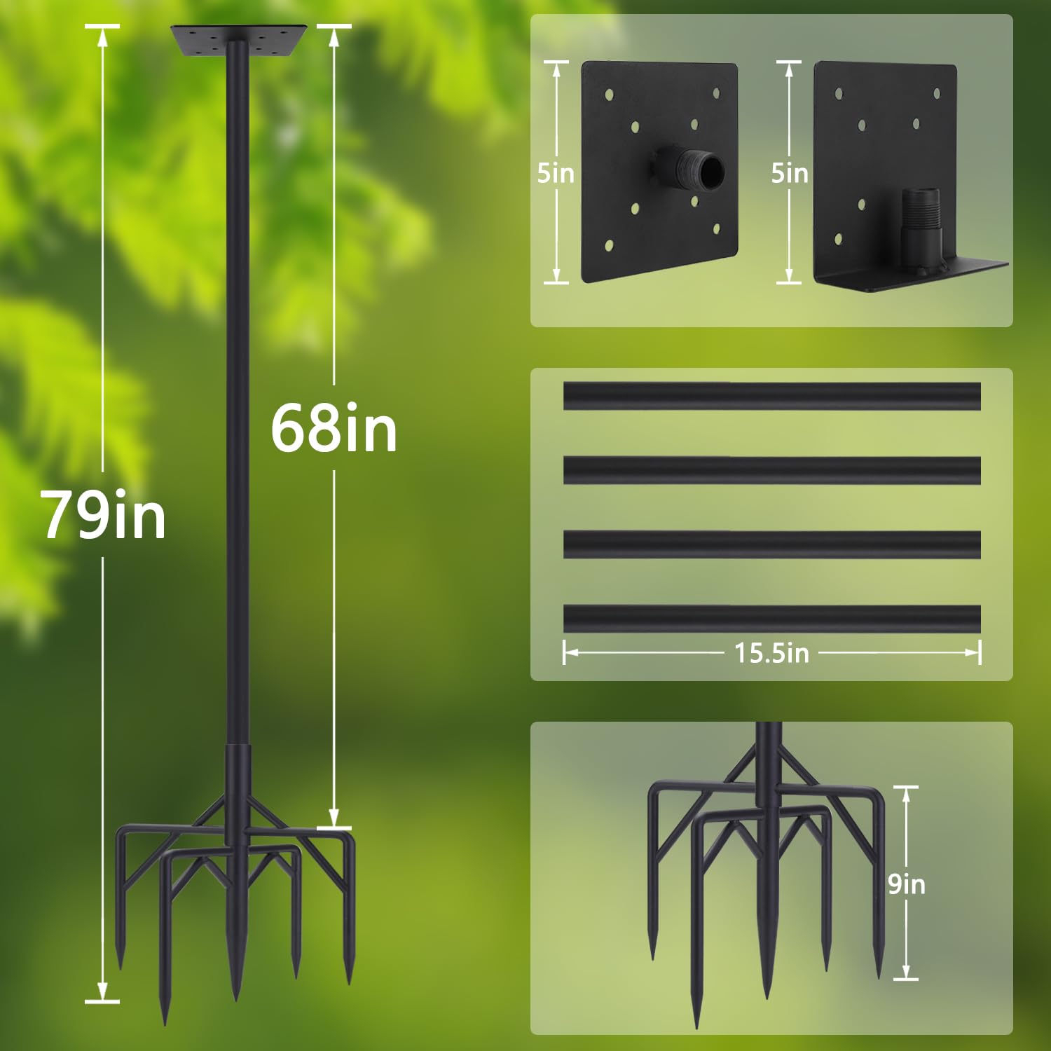 - 【5-Prong Base Robust and Stable】Our bird house pole was designed to 5 Prongs base, Extended 5-prong base enable the pole stand firm in the soil. And four of the feet is made of solid iron bars instead of hollow iron tubes. It will be stronger and more long lasting than other conventional bird house pole. No need to worry about strong winds and bad weather.