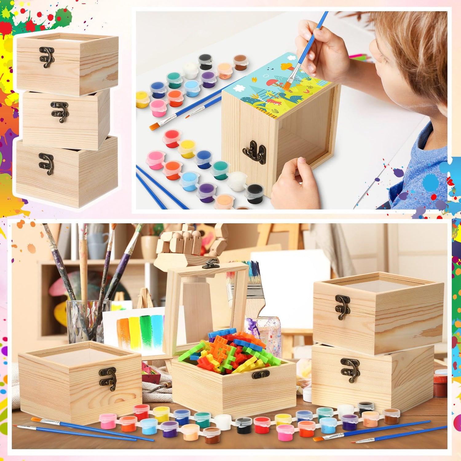 - Complete Creative Set: each package includes 6 unfinished wooden boxes, 6 strips of 12-color paint, 12 brushes, and 6 palettes; This complete set ensures you have everything needed to start your artistic journey right away