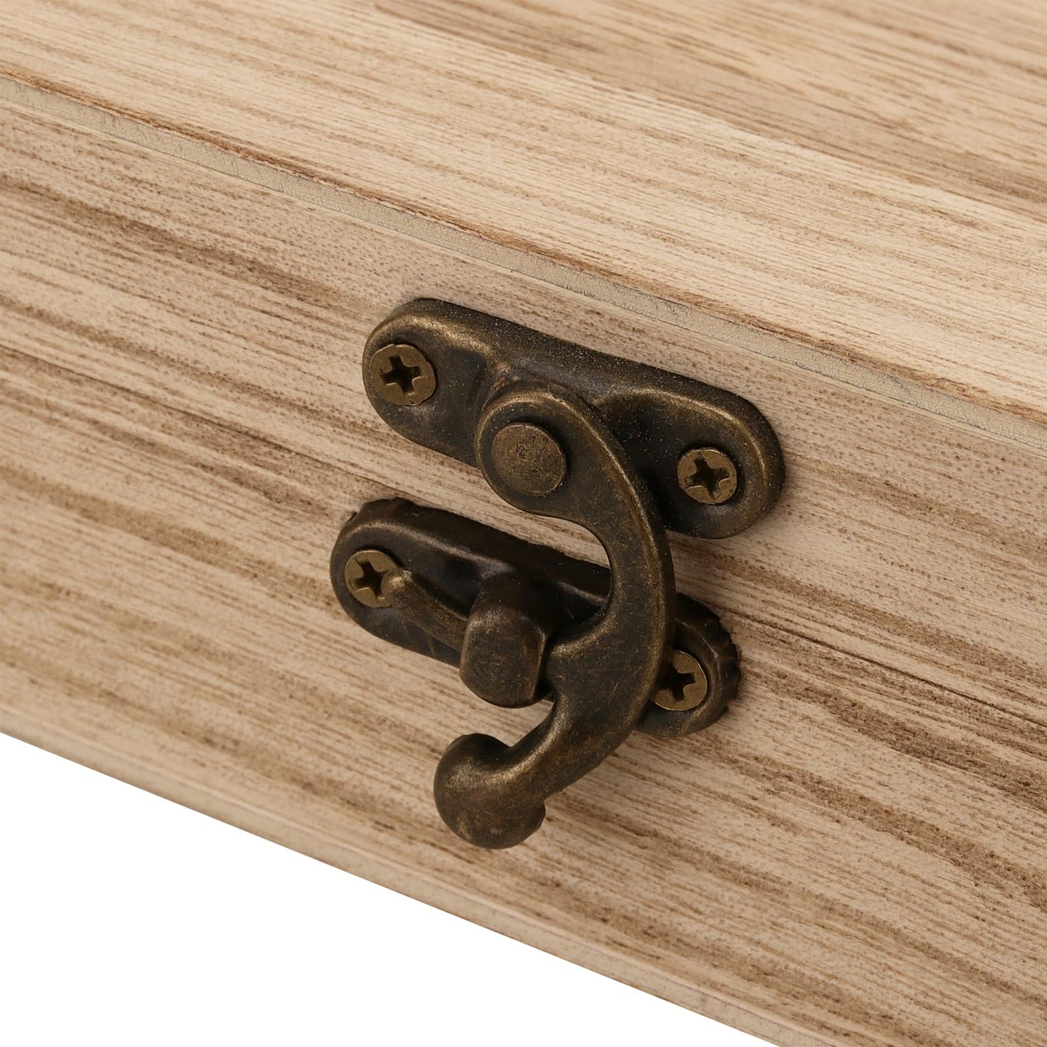 - ROBUST HINGE AND LATCH DESIGN - Our wooden boxes for crafts uses a strong metal hinge to connect the lid and the box. The cover is tightly connected to the box body without gaps. And with a lock design, it is easy to lock, and the items inside are not easy to fall out.