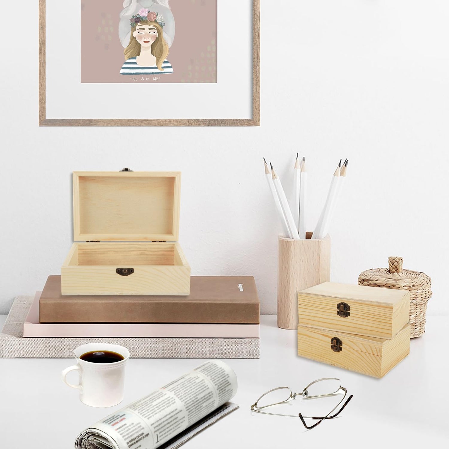 - HIGH QUALITY: MUXHEL unfinished wood craft boxes are made of sturdy wood and the hinge design can keep your items safe. The smooth surface is perfect for painting, staining or decorating