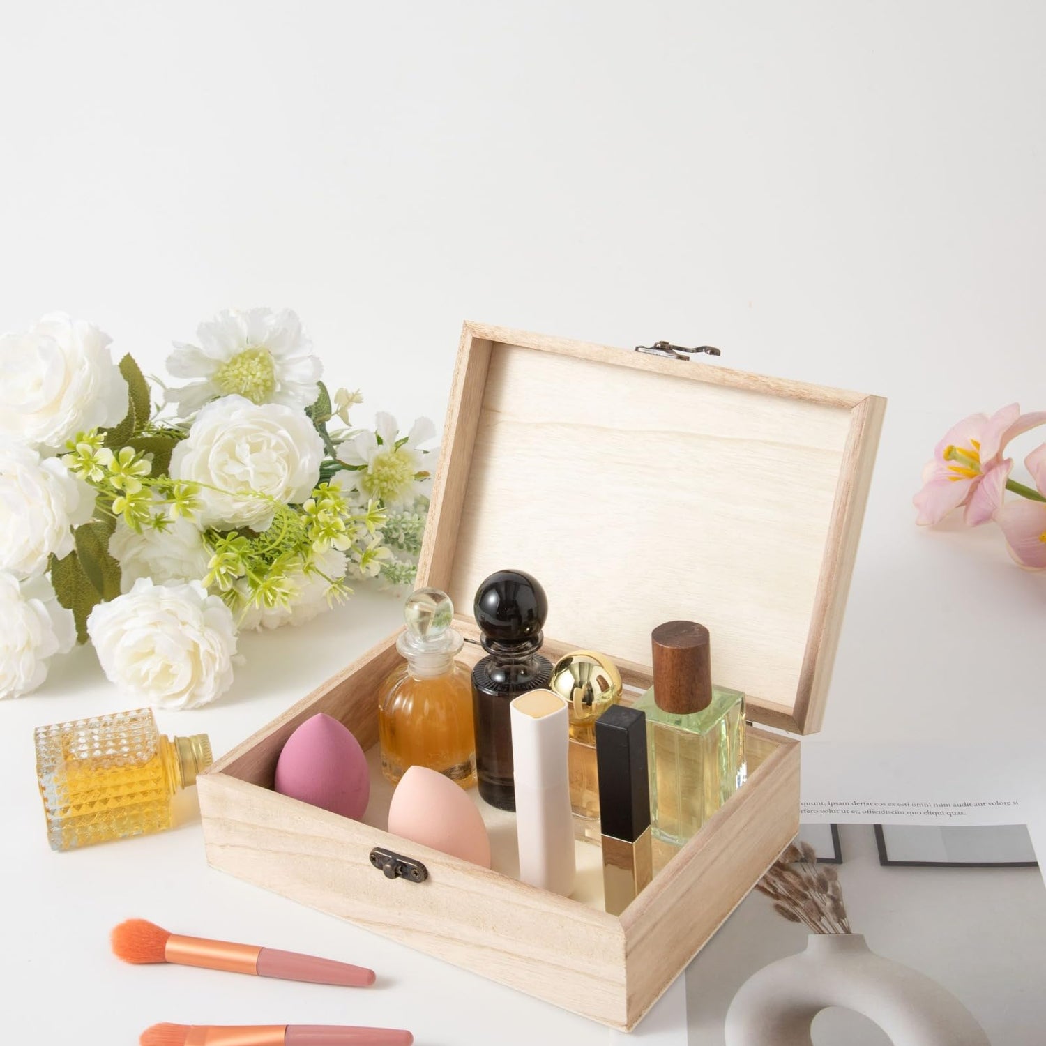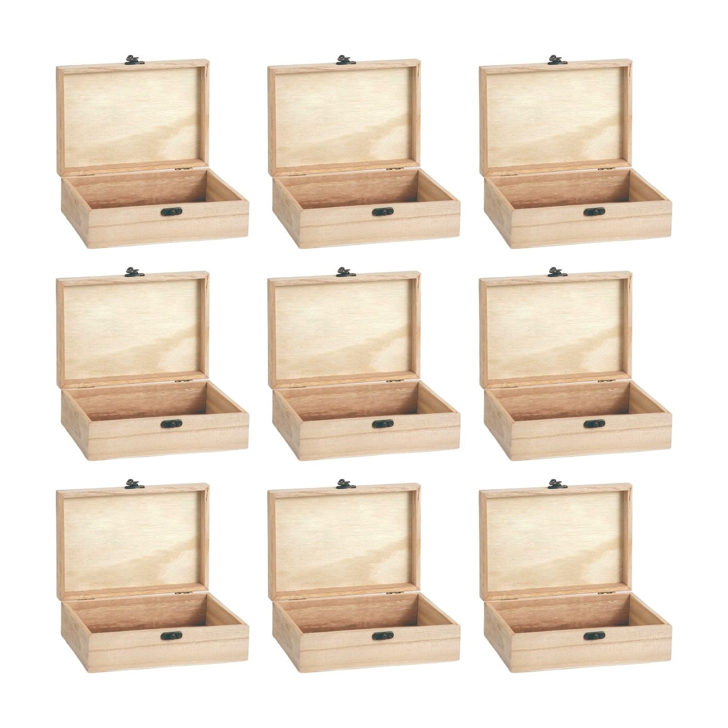 Xhqsulsclac 8 PCS Unfinished Wooden Box,6.6X5.1X3.1 in Small Keepsake Box Jewelry Storage Handmade DIY Wooden Boxes Hinged Cover with Front Clasp
