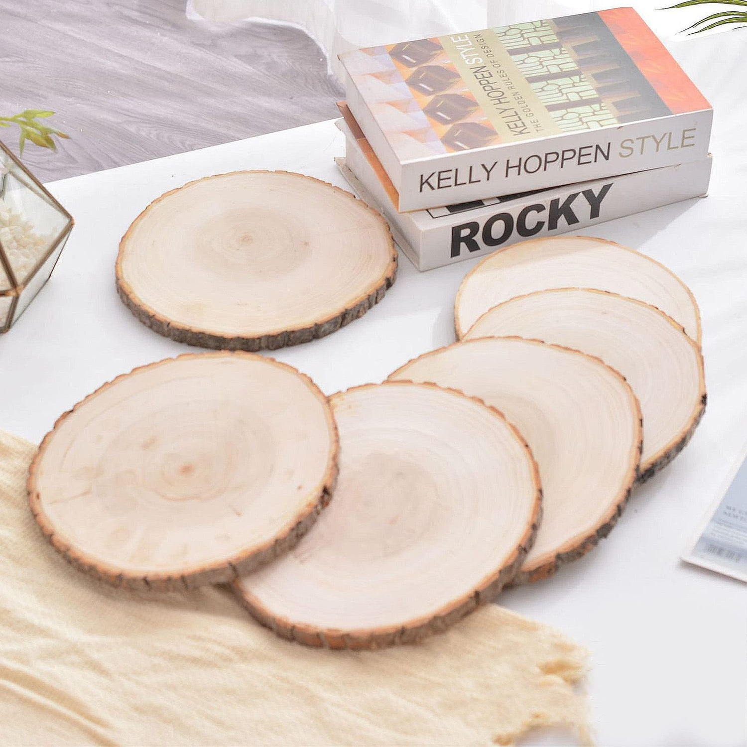 - Natural Wood Circles: 8 Pcs wood slices are natural and the surface is smooth, retain the tree bark and tree annual ring texture, which makes the wood circle more rustic.