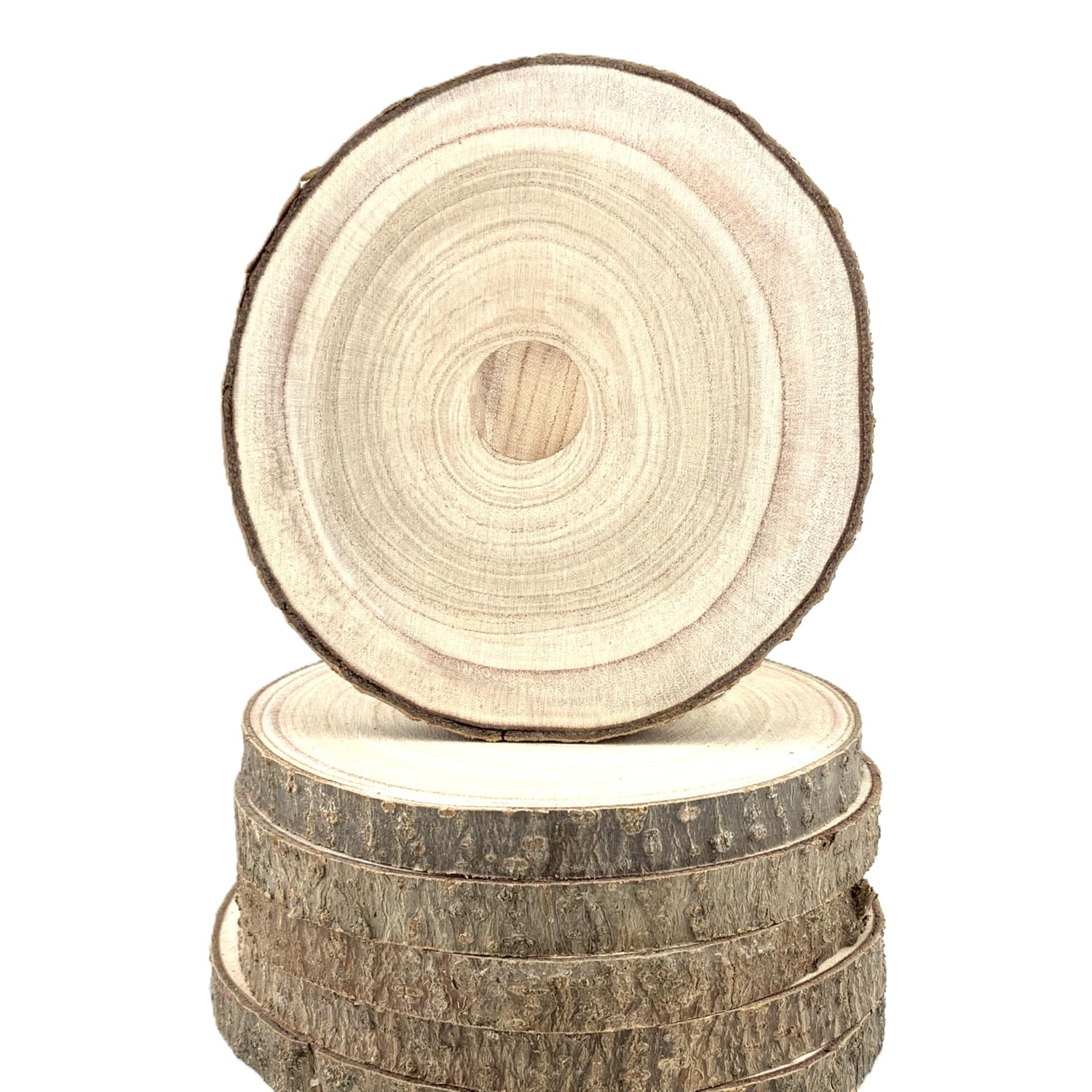 - Versatile: Set of 6 unfinished wood slices perfect for DIY crafts, rustic wedding decor, centerpieces, and more.