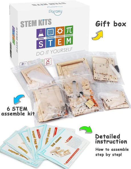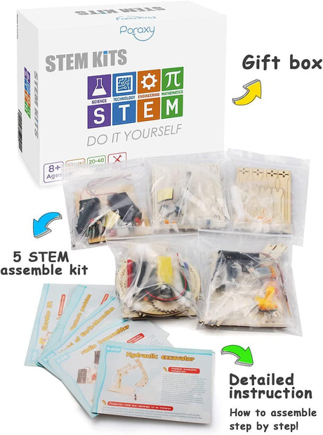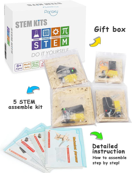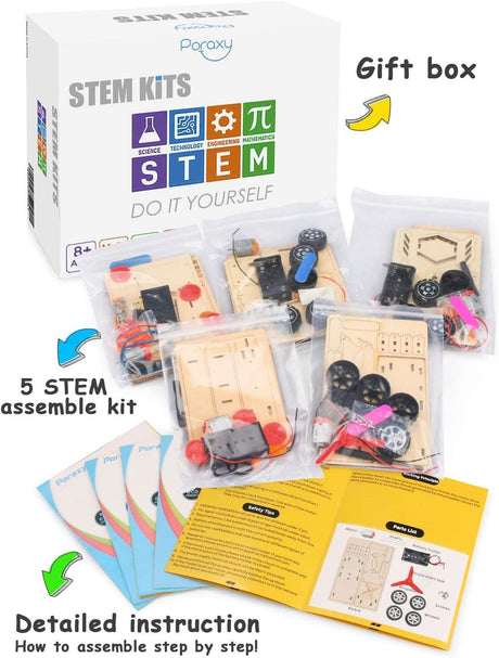 • 5 Set STEM Projects for Kids Ages 8-12, Model Car Kits, Wooden 3D Puzzles, Educational Science Experiment Kits, Building Toys, Gifts for Boys and Poraxy