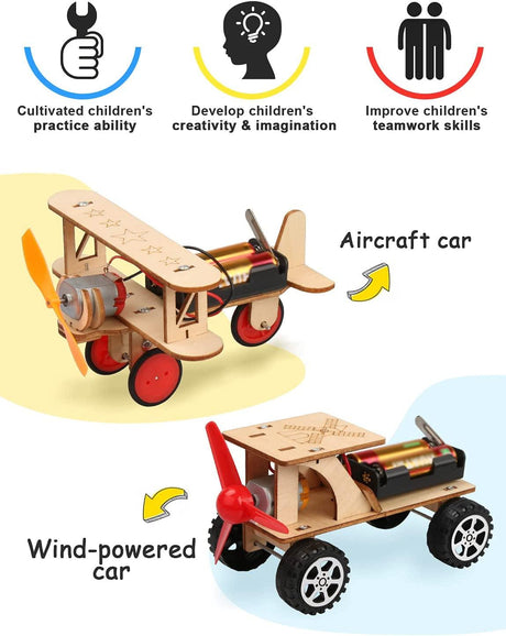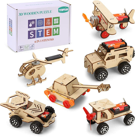 • 6 in 1 STEM Kits for Kids Ages 8-12, Educational Science Craft Building Kit, Wooden Model Car Kits, Gifts for Boys Ages 8 9 10 11 12 +, Wooden 3D IKUKUER