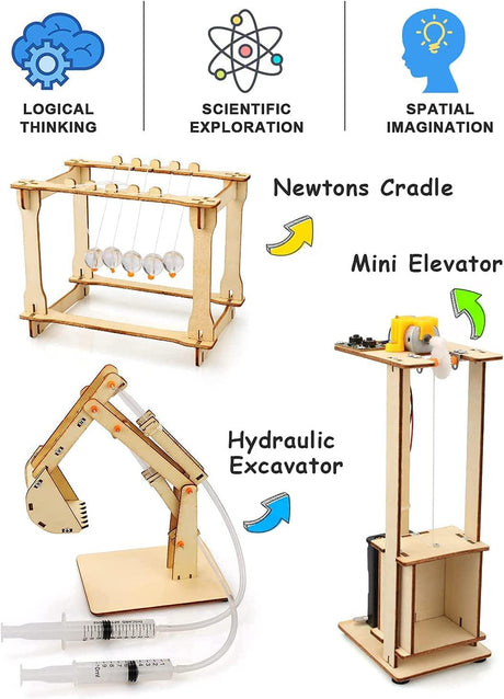 • 10 in 1 STEM Building Kits for Kids, Wood Craft Kit for Girls Age 8-12, Science Experiment Projects for 6-8, Woodworking Model Kit,3D Puzzles STEM Yutin