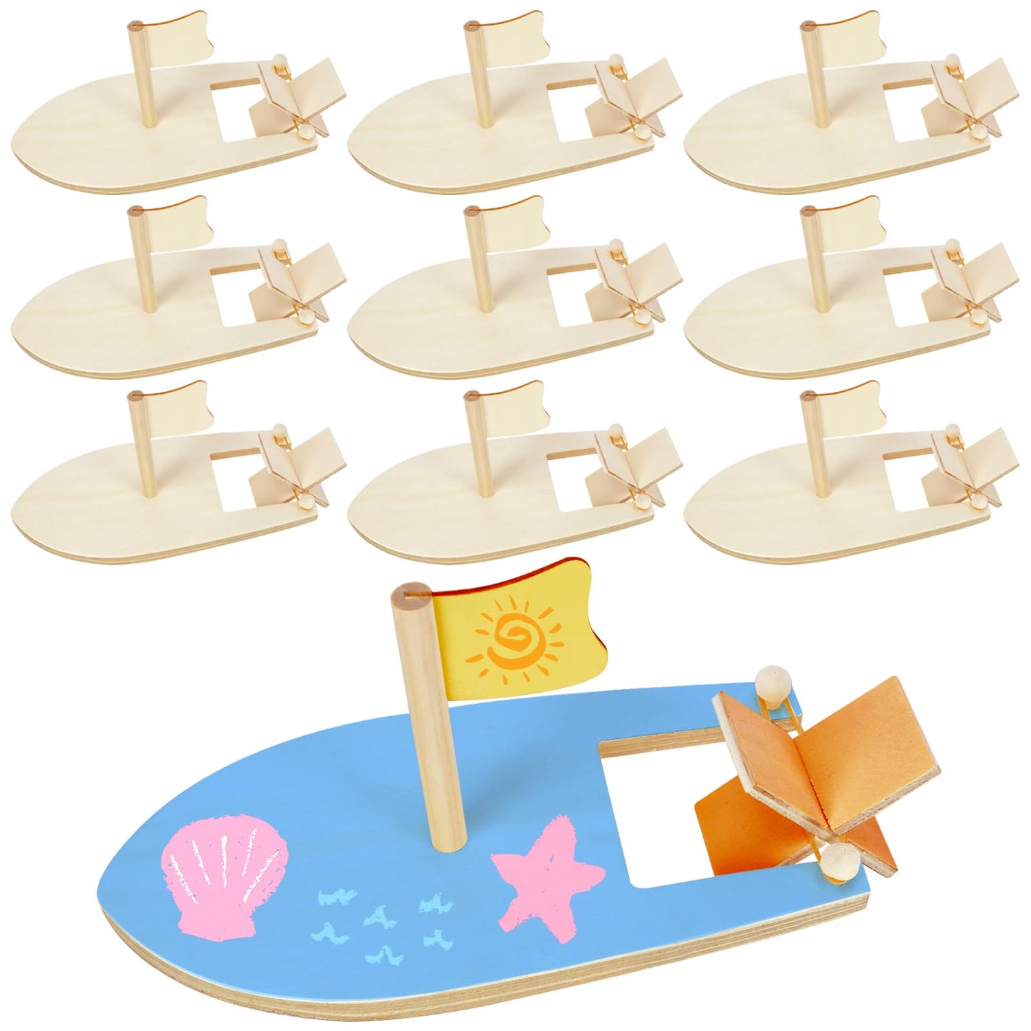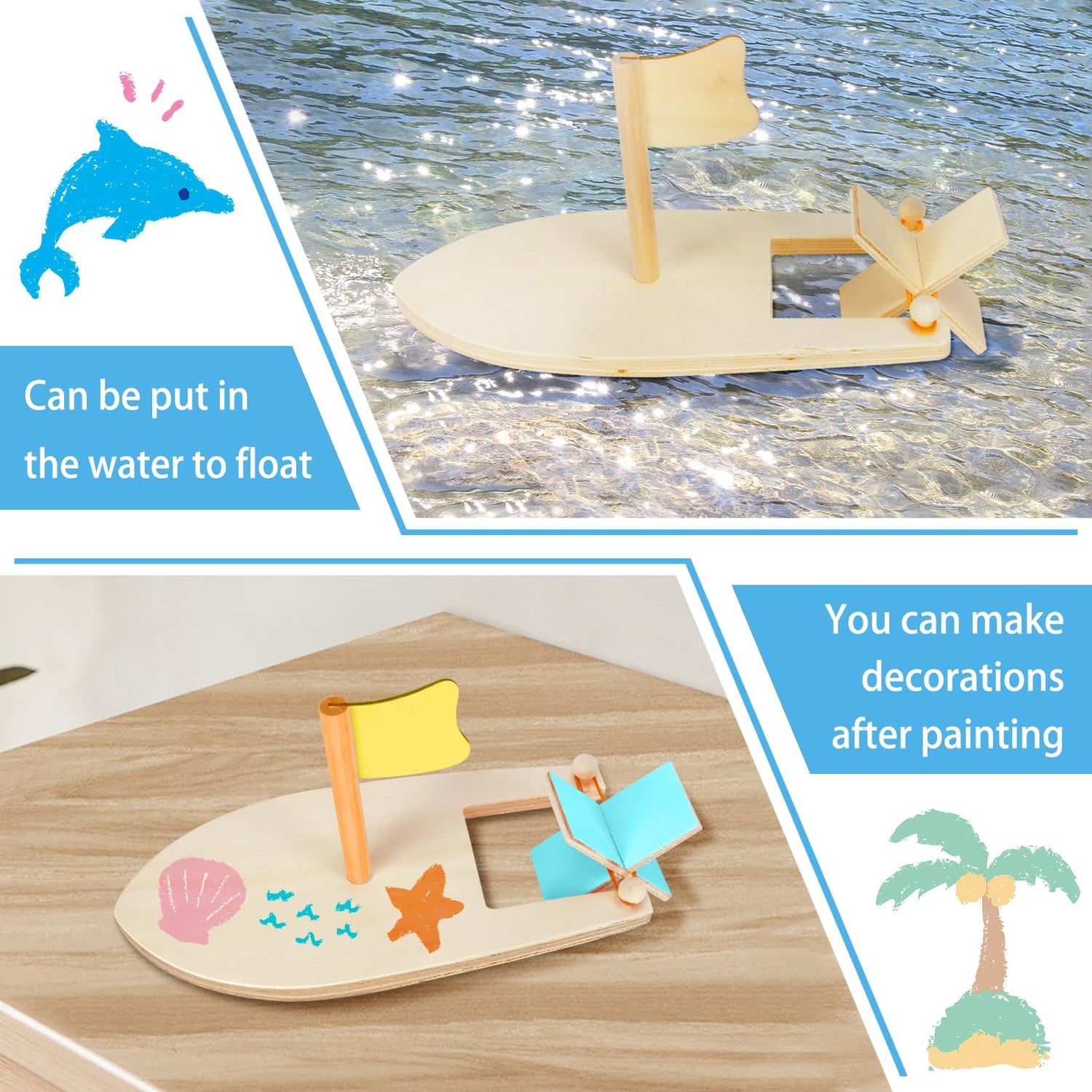 Amersumer 10 Pcs DIY Toy Wood Boat Craft Kits, Mini Wooden Sailboat Kits, Paddle Boats Paint and Decorate for School Projects, Make Your Own Sailboat Craft