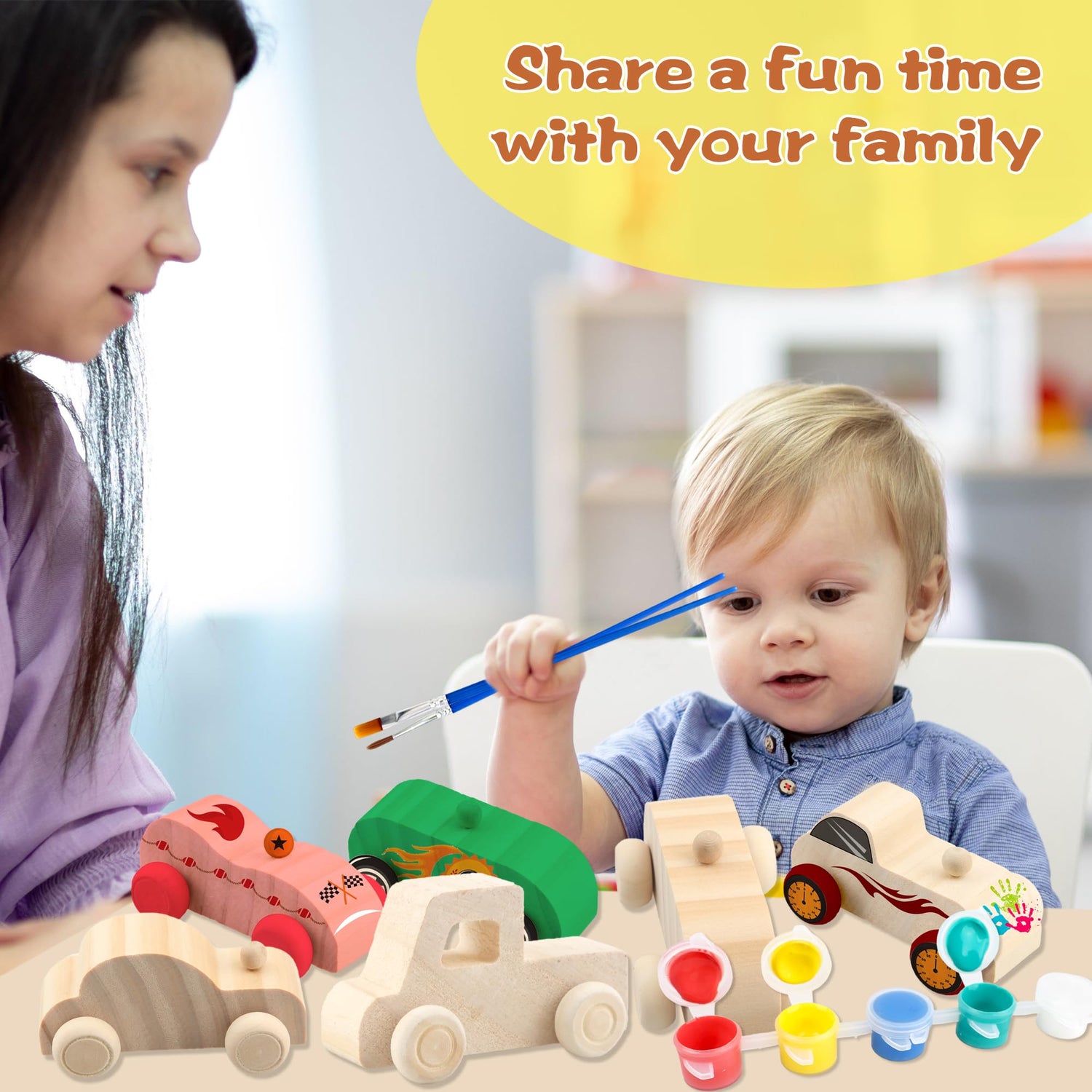- 【Nolvety Design】: The wooden race cars to paint kit include unfinished wooden cars, acrylic paint set, will maximize kid's fun and interest. The DIY art craft wood toys help children cultivate their imagination, hand-eye coordination, creative expression and fine motor skills. Create a wooden cars of their own. Let their imagination run wild.