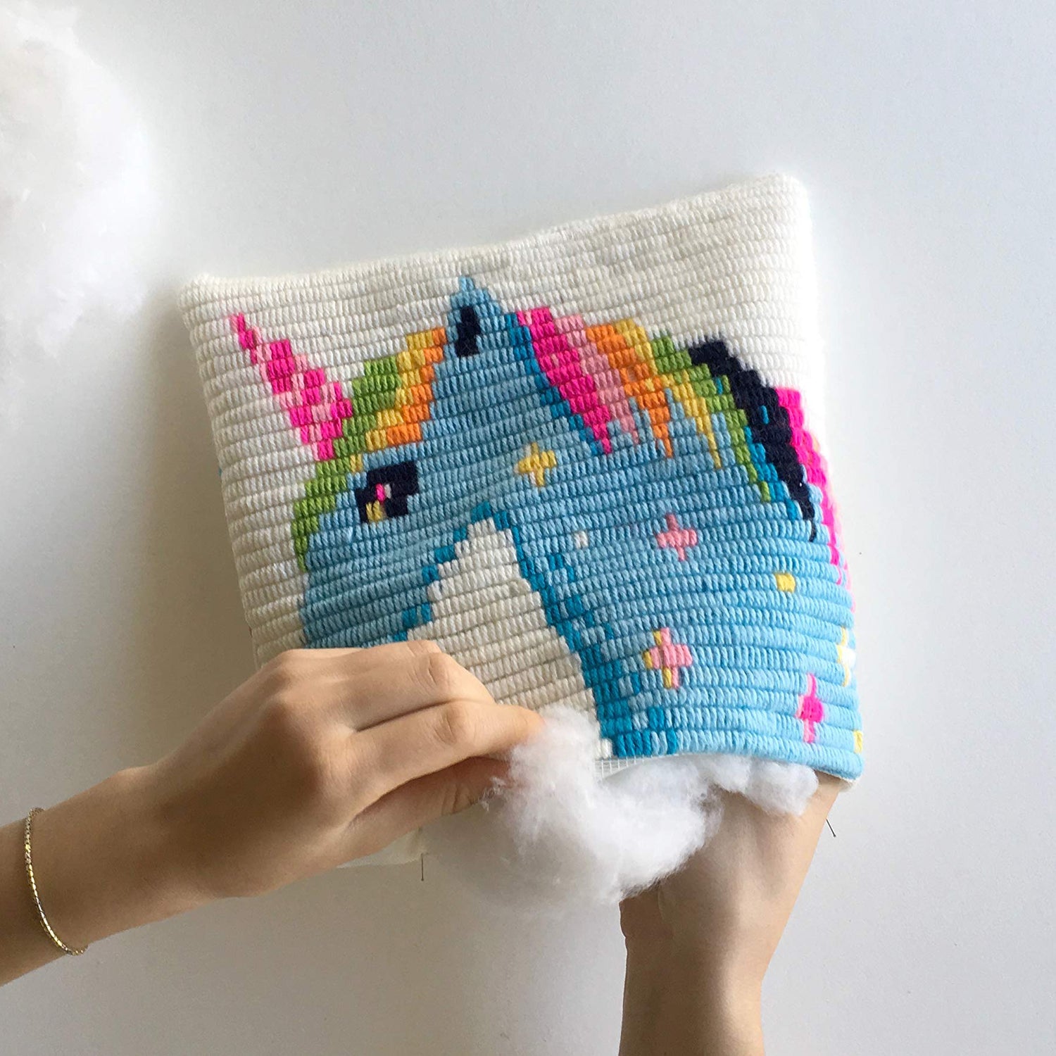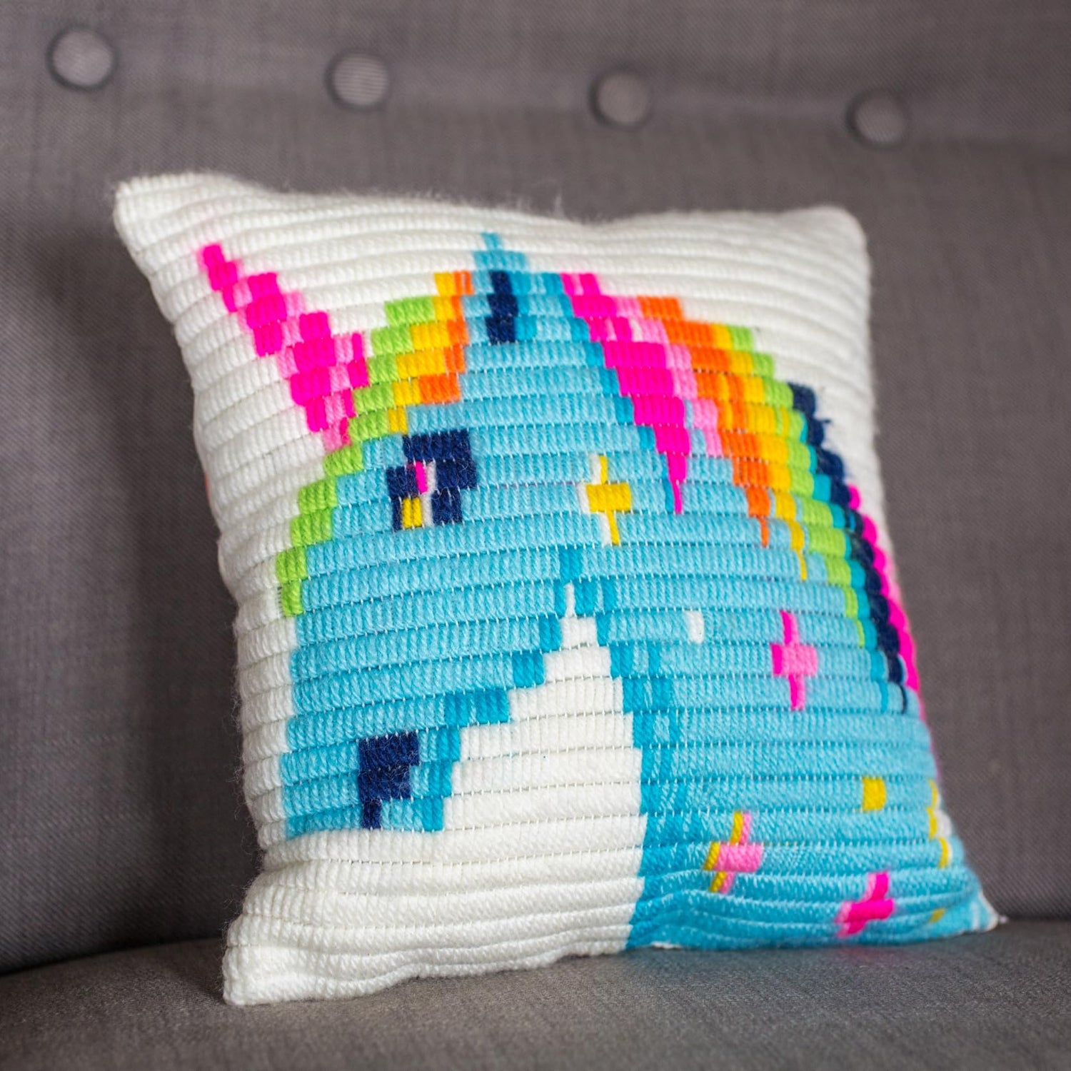 - CREATE A BEAUTIFUL DECOR PIECE – Turn your finished design into a one-of-a-kind home accent! Once completed, your unicorn cross stitch kit transforms into a stunning needlepoint throw pillow, adding a cozy, handmade touch to any bedroom, nursery, or living space.