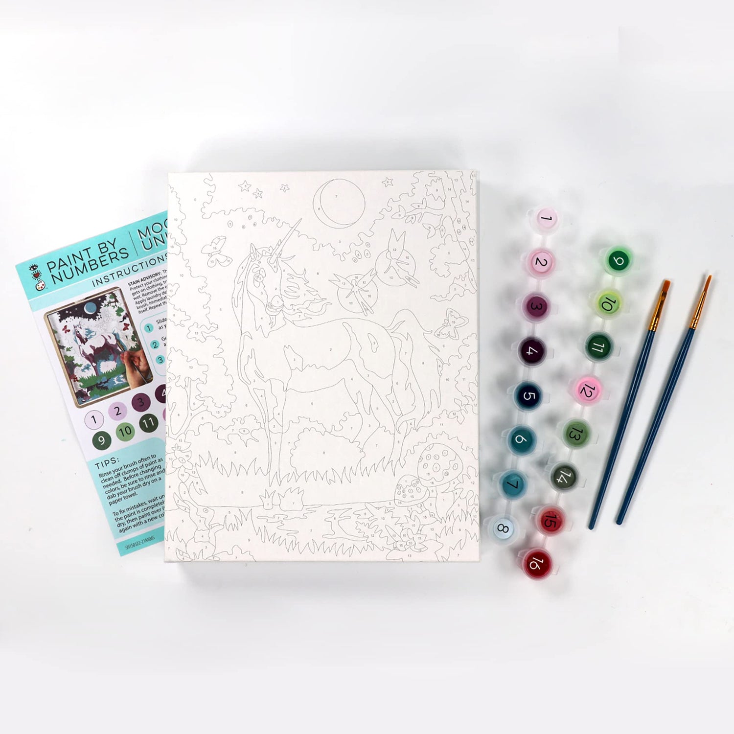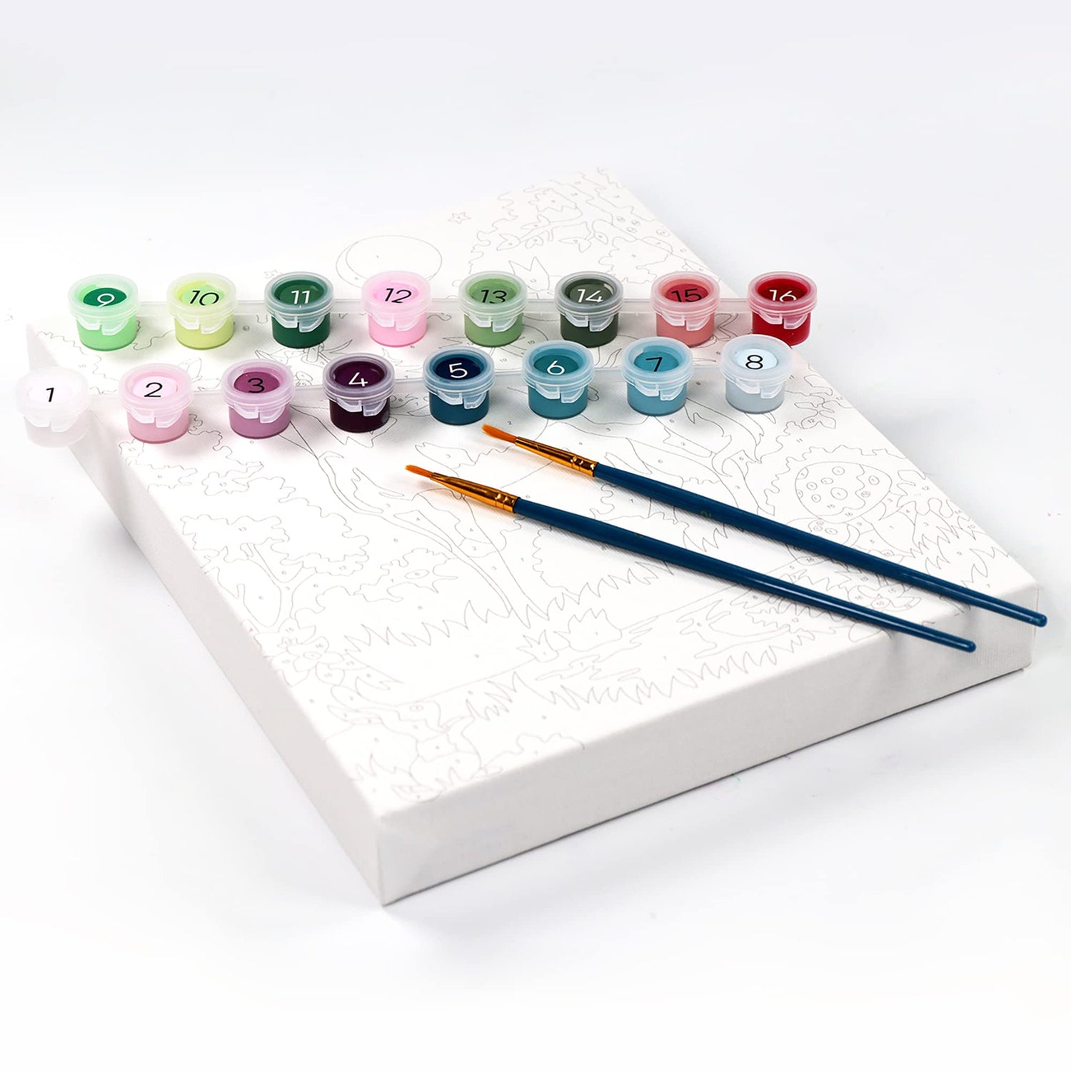 - Artistic Mastery Made Easy: Elevate your child's artistic abilities with our framed paint by number canvas kit, designed to make mastering the art of painting simple and enjoyable. With 16 vibrant paints and 2 brushes included, they'll have everything they need to create stunning works of art.