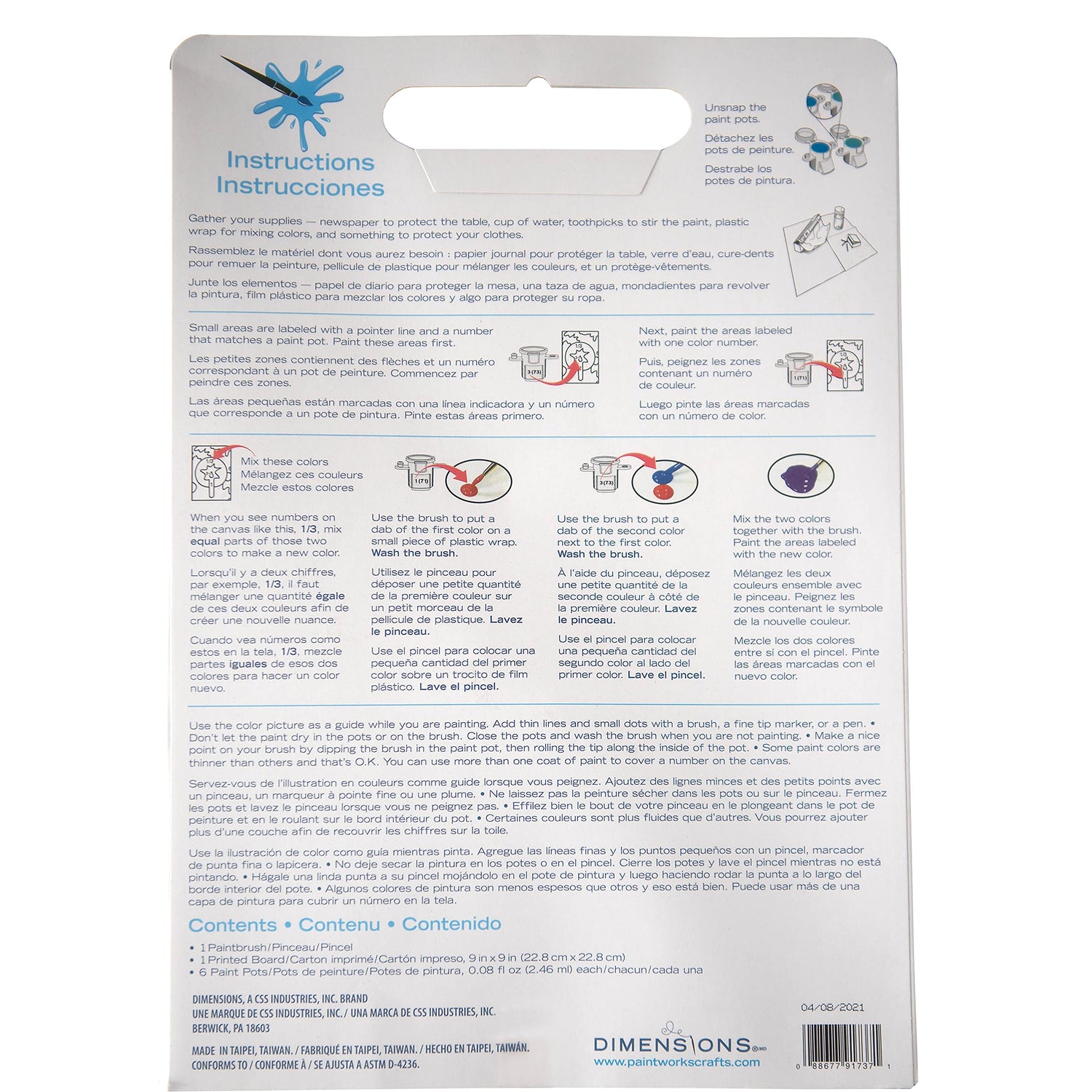 - This Dimensions paint by number set comes with high-quality acrylic paints, printed art board, #1 round paintbrush, and instructions