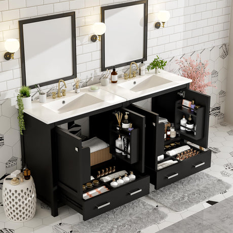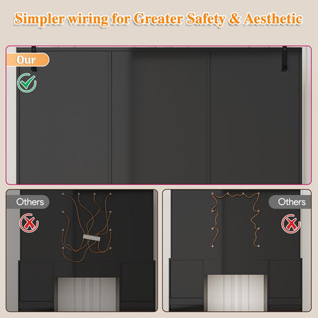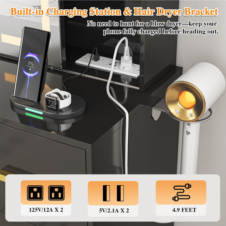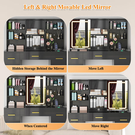 • DWVO Vanity Desk with Large Mirror and LED Lights, Makeup Vanity Table Set with Power Outlets, Comfy Stool & Storage Drawers, Shelves and Cabinets, 3 Lighting Modes Makeup Table, Dressing Room, Black DWVO