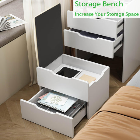• Haewon Vanity Desk with Mirror, 11 LED Lights and Power Outlet, Makeup Vanity Set with Storage Cabinet, Drawers and Chair, White Dressing Table with 3 Adjustable Light Modes for Bedroom Haewon