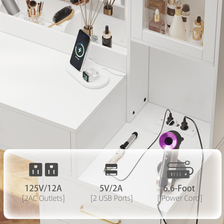 • Wodeer Makeup Vanity Desk with Mirror and Lights, White Vanity with Glass Top, LED Lights & Power Outlet, 3 Drawers & 2 RGB Glass Cabinets, Adjustable Lighted Dressing Table for Women & Girls Bedroom Wodeer