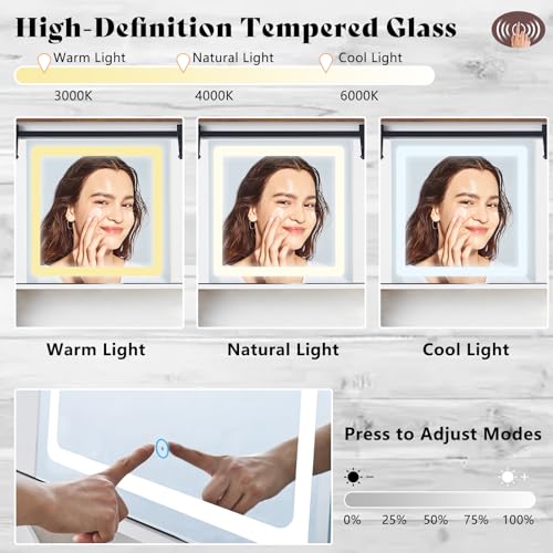 - 【SLIDING HD MIRROR WITH LED LIGHTS】 Adjustable LED lights for flawless makeup and skincare routines. Choose from cool white, warm white, or natural light which can be pushed to both sides to meet your grooming preferences.