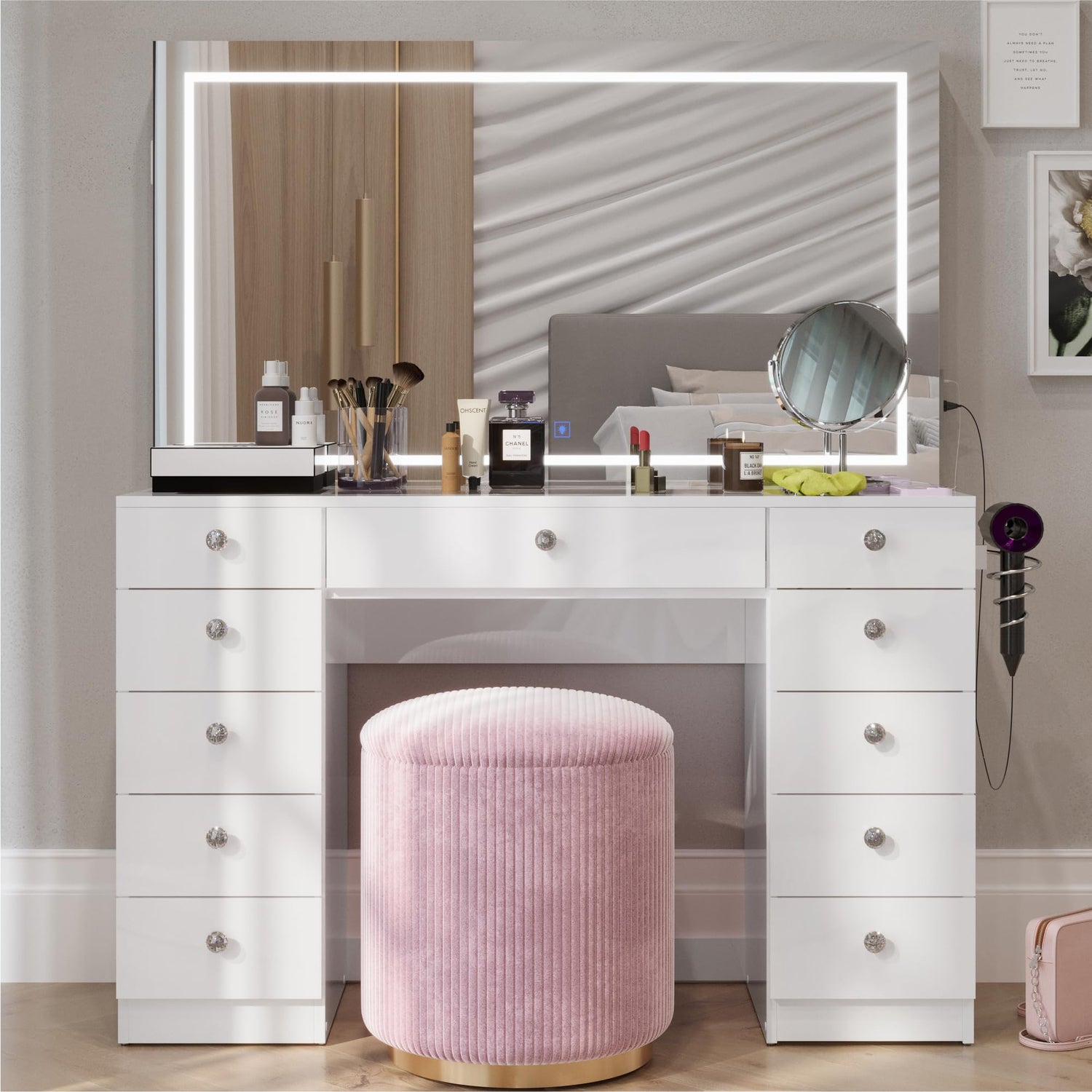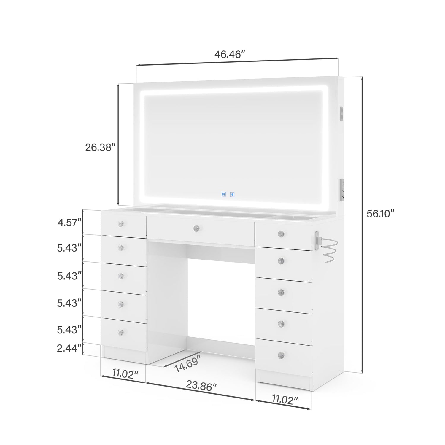 - 11 Drawers with Crystal Knobs and Hair Dryer Holder: Organize your beauty essentials in 11 spacious drawers with elegant crystal knobs, plus a built-in hair dryer holder for easy access to your styling tools.