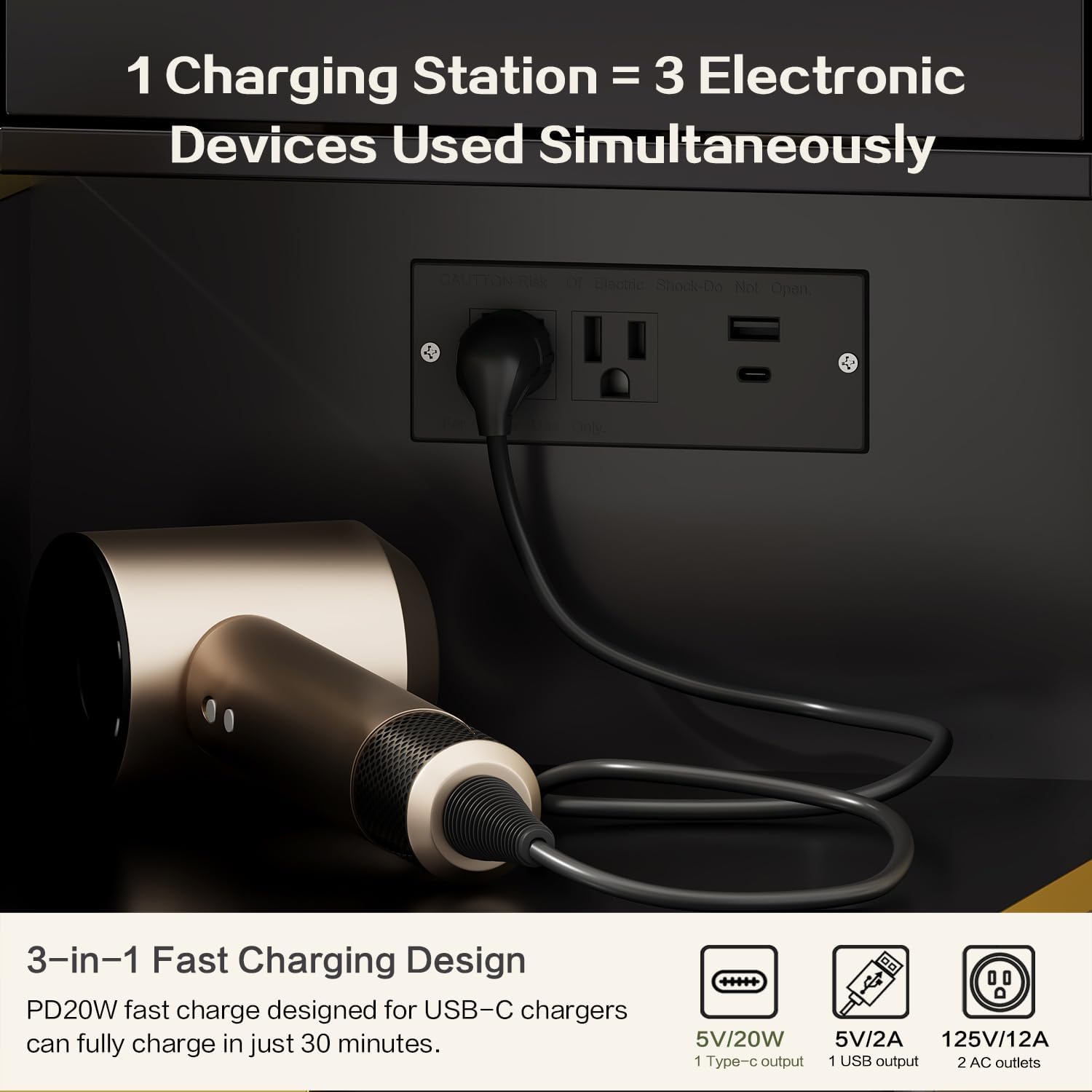 - 【3-Color LED Light】The vanity desk features a specially shaped dimmable lighting mirror with 3 different LED lighting colors, including natural, warm and cool light, for a variety of indoor lighting and environments to optimize your makeup