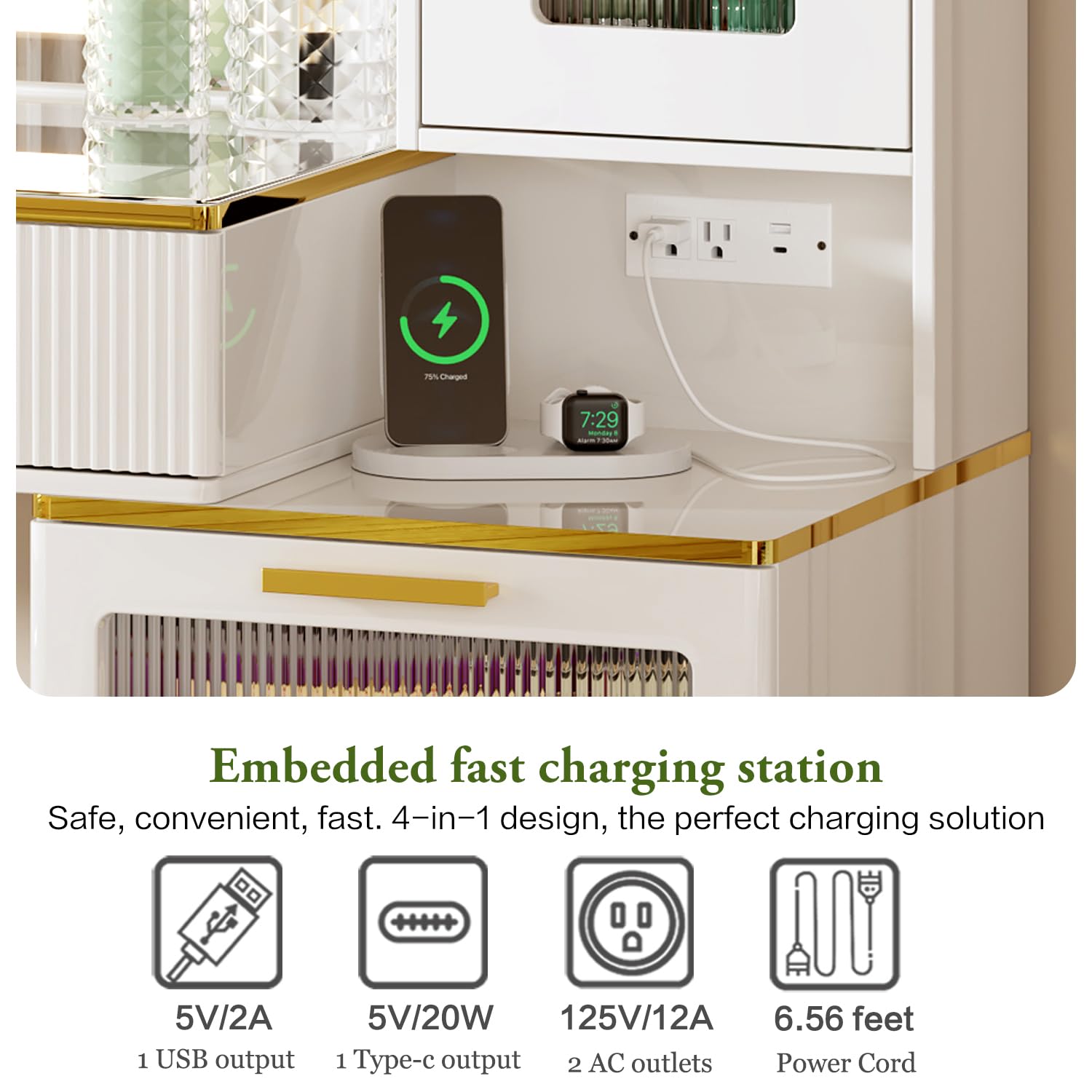 • 【3-Color LED Light】The vanity desk features a specially shaped dimmable lighting mirror with 3 different LED lighting colors, including natural, warm and cool light, for a variety of indoor lighting and environments to optimize your makeup