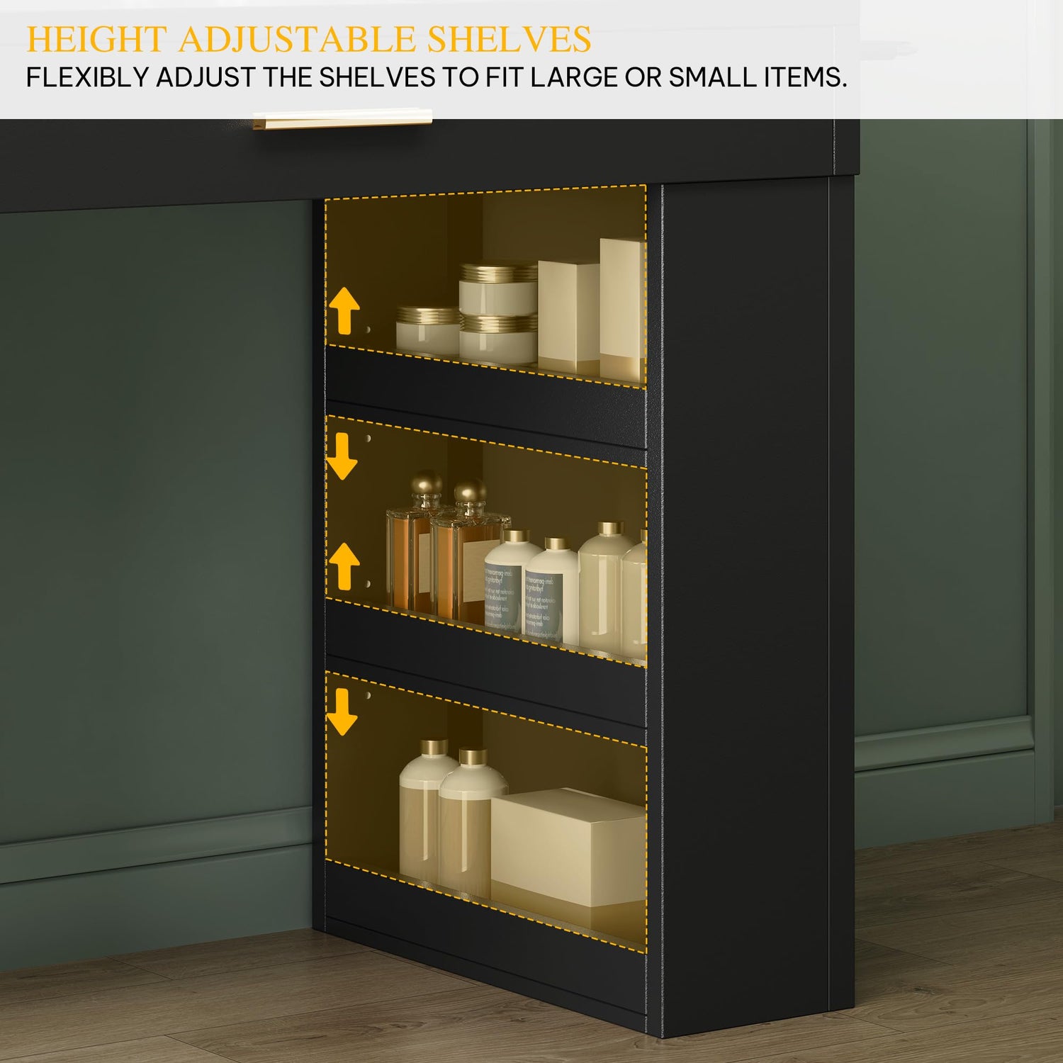 - A Lot of Storage: Never hunt for your mascara again. With 4 drawers, 3 open shelves, 3 side racks, and even a built-in hairdryer holder, everything has its place. Style meets practicality in a setup that keeps your beauty zone effortlessly tidy