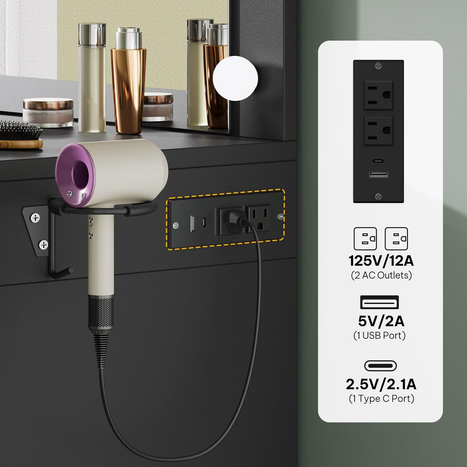 - Built-In Power Access: Power up in style, this makeup vanity desk includes 2 AC outlets and 2 USB ports, so you can plug in your hair tools or charge your phone while getting ready. No more extension cords or outlet hunting
