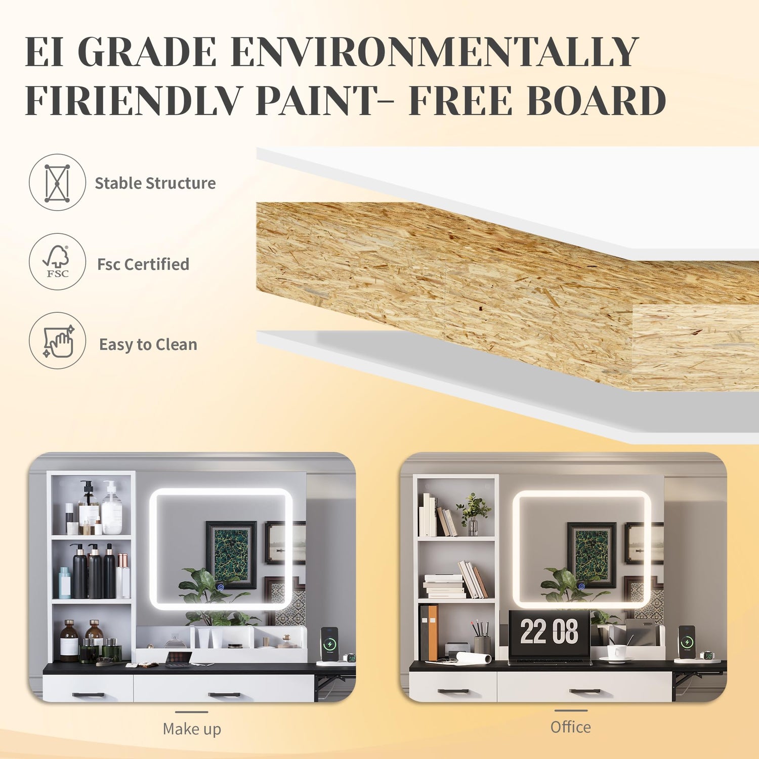 - 🎅【3 Lighting Modes & Brightness Adjustable】This vanity desk features a large LED mirror with 3 color modes (warm, natural, and cool), which is safer than ordinary light bulbs. You can change the color mode by pressing the touch switch, or adjust the brightness by long-pressing the touch switch.
