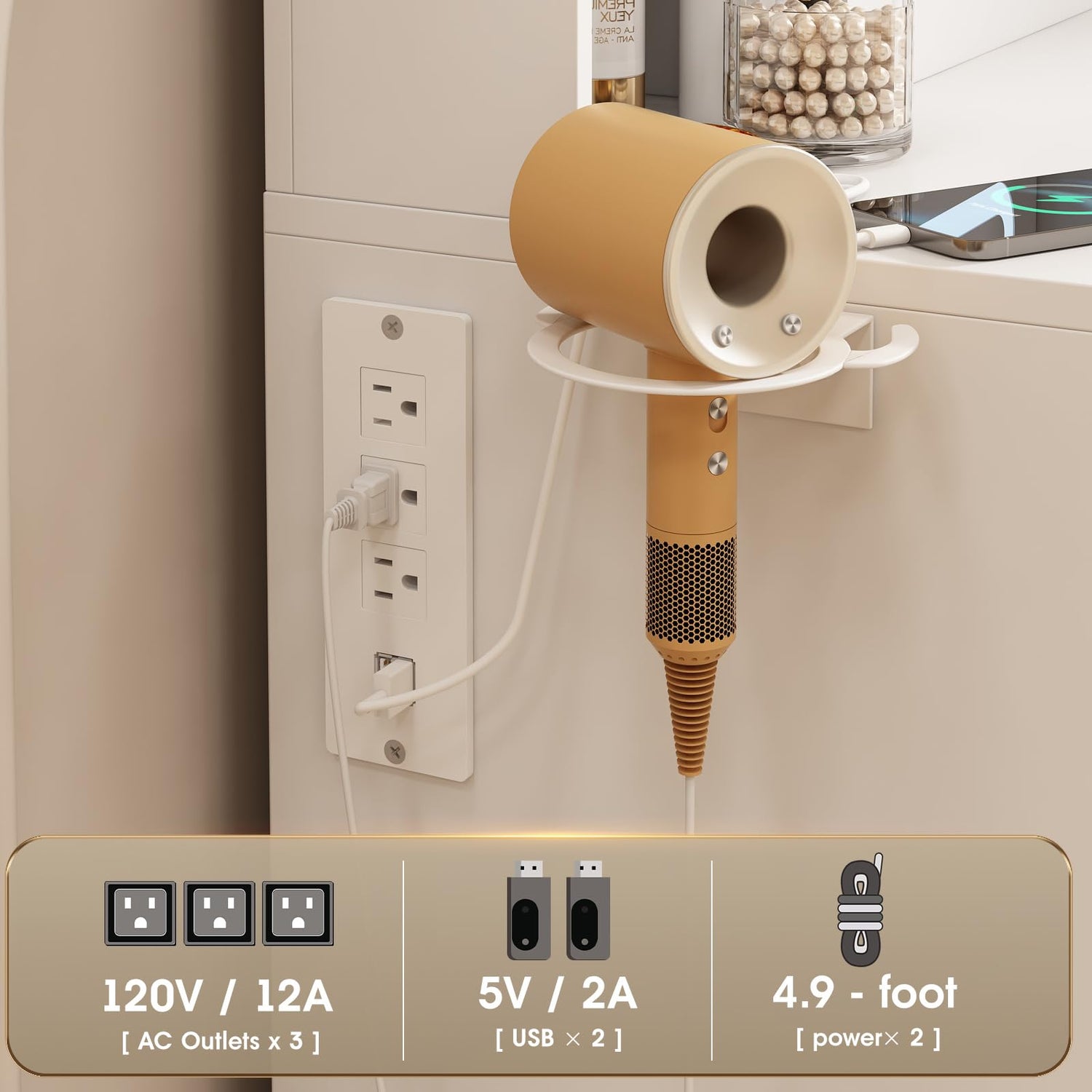 - CONVENIENT CHARGING DESIGN: The make up vanity with 5 built-in charging stations (3 outlets and 2 USB ports) can help you charge your any devices while applying makeup at the same time. The desk also has a special hook to put the hair dryer conveniently