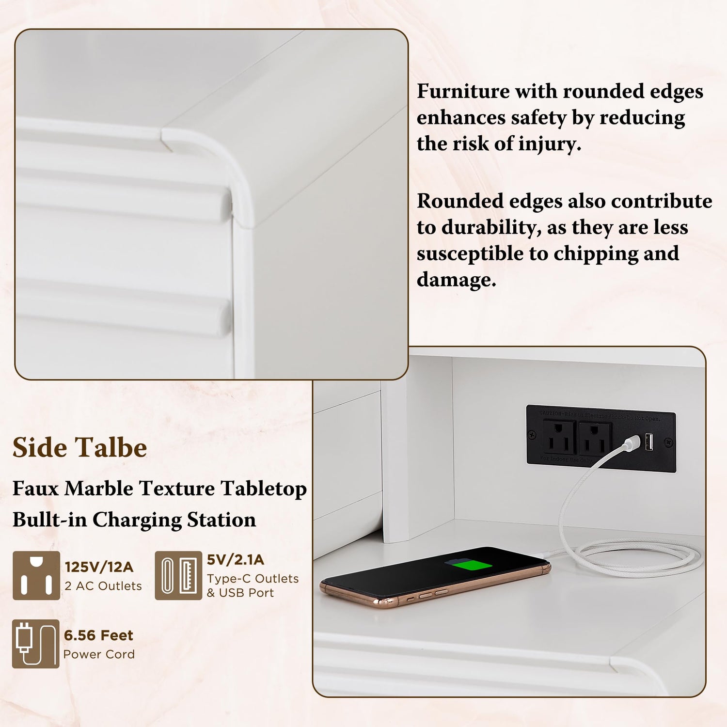 - 【Versatile-Visible & Charge】We've meticulously designed a transparent toughened glass tabletop vanity makeup table, providing a clear view of the neatly organized drawers in the dressing table. Additionally, there's a built-in charging station on the side for convenient use of curling irons, hairdryers, beauty devices, and phone charging. The power outlets don't take up tabletop space, enhancing safety and usability