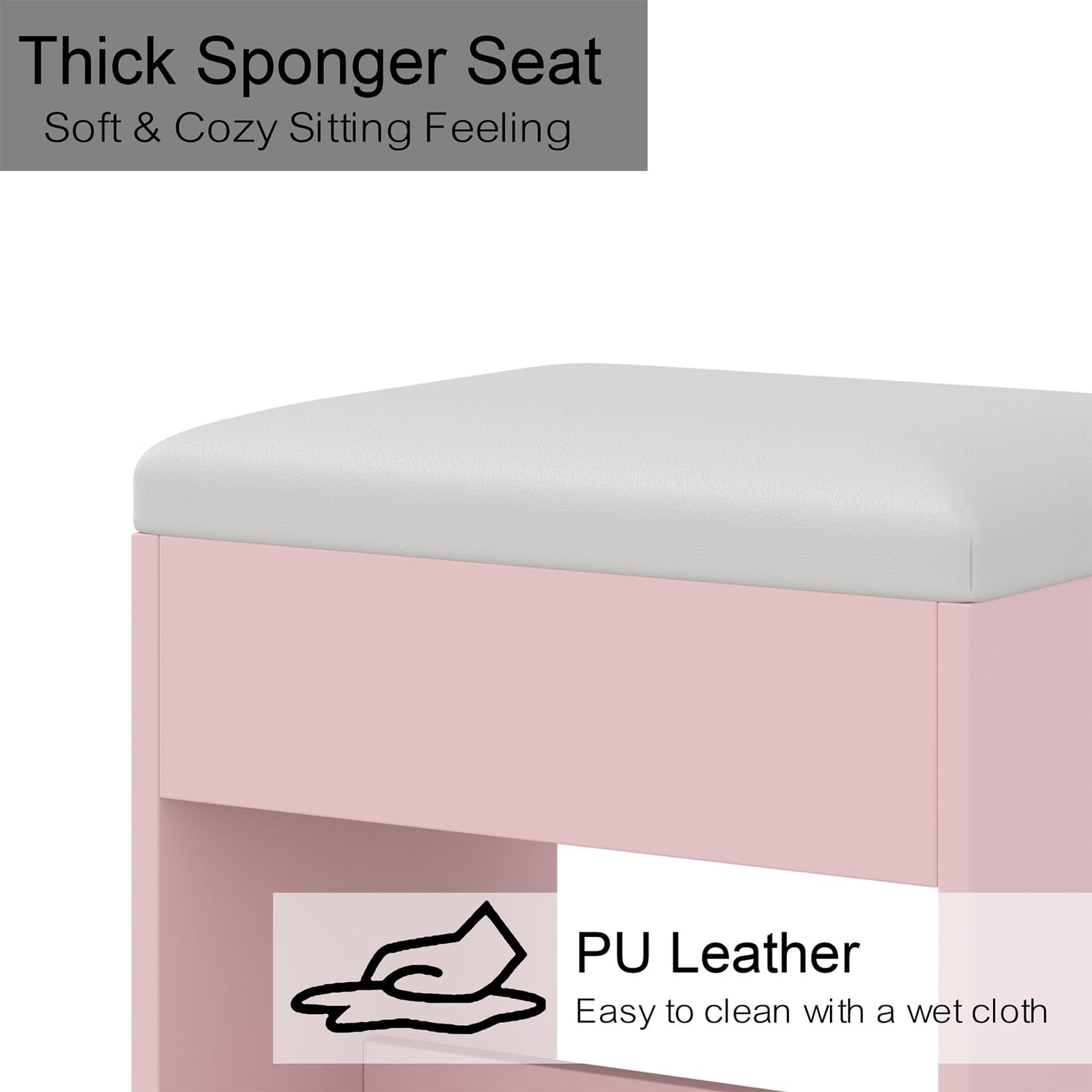 - Makeup Stool: The cushion is made of double-layer soft sponge and PU fabric, no need to worry about the discomfort brought by sitting for a long time, giving you more comfortable makeup experience; The makeup stool can be perfectly hidden in the bottom of the dressing table, fully save the occupied space