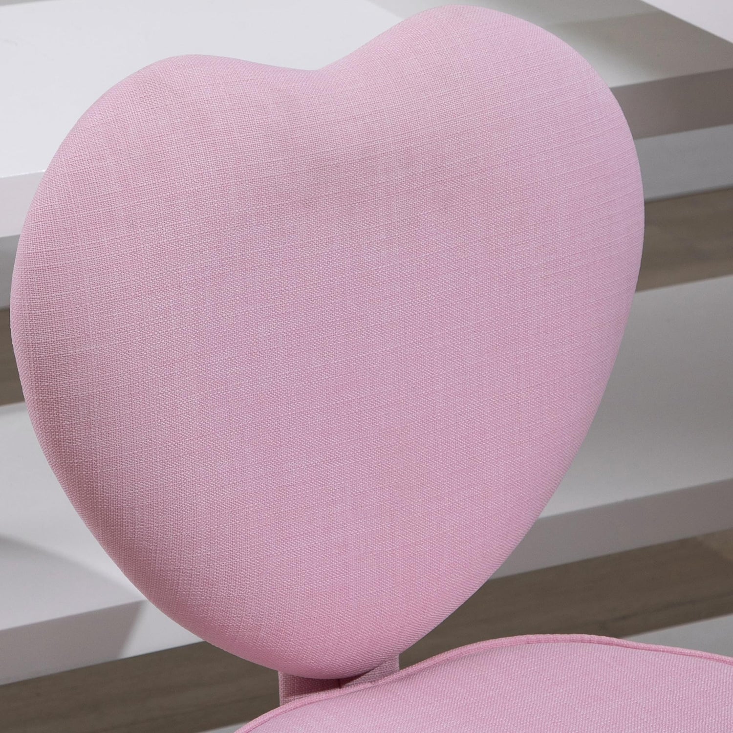 HOMCOM Armless Home Office Desk Chair, Modern Fabric Makeup Vanity Chair with Heart Shape, Swivel Wheels, Height Adjustable, Pink