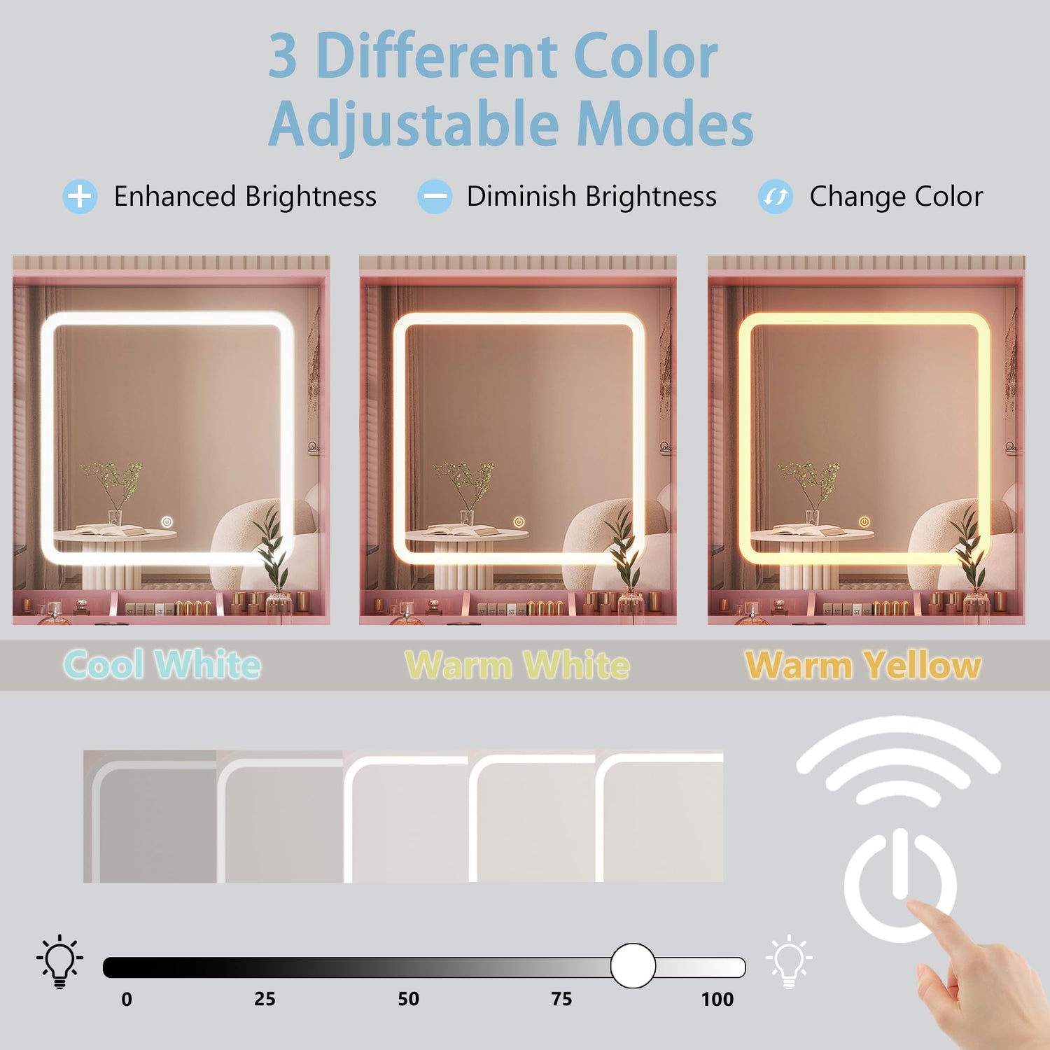 - 【INTELLIGENT LIGHTING CONTEOL】Comes with 3 different color modes, the makeup vanity mirror with lights can adjust different modes to suit your makeup scene, such as warm white, natural white, cool white. Classical design give this makeup vanity desk with lights an infinite fascination. Whether it's Anniversary Day, Halloween, Thanksgiving or Christmas, the vanity mirror with lights desk and chair definitely a great gift for daughter, wife, mother, girlfriend.