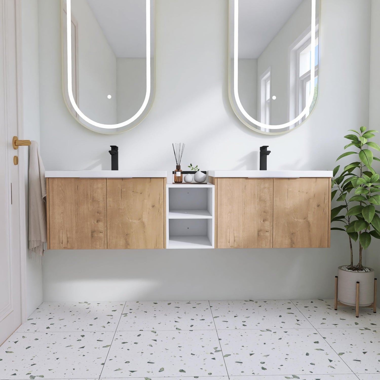 • STURDY AND ECO: The 72 Inch Floating Vanity is constructed from premium eco-friendly PLYWOOD and finished with scratch and water-resistant melamine. It is designed to endure moisture and humidity while being easy to clean and maintain.