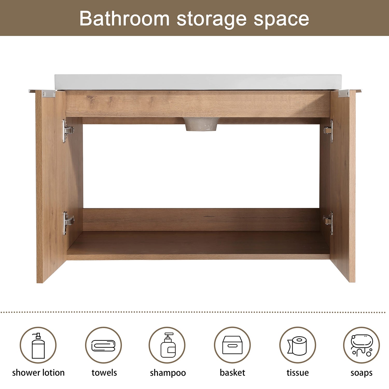 • SLIENT SOFT CLOSING: Modern Brown Bathroom Vanity Set, with 304 stainless steel soft-closing hinges and metal handles, ensuring every smooth, quiet, and safe close.