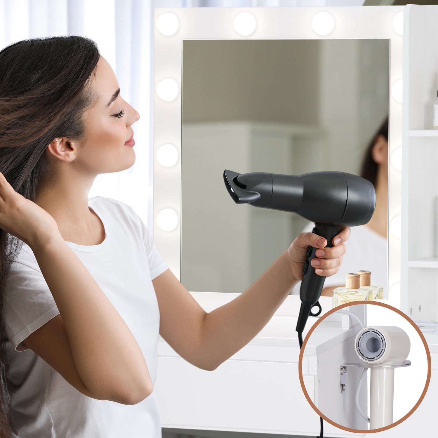 - Functional and Unique Design with Added Features: This vanity desk is designed with convenience in mind, including a dedicated hairdryer holder for easy access. No more digging through drawers—everything you need is at your fingertips, making your beauty routine smoother and more enjoyable