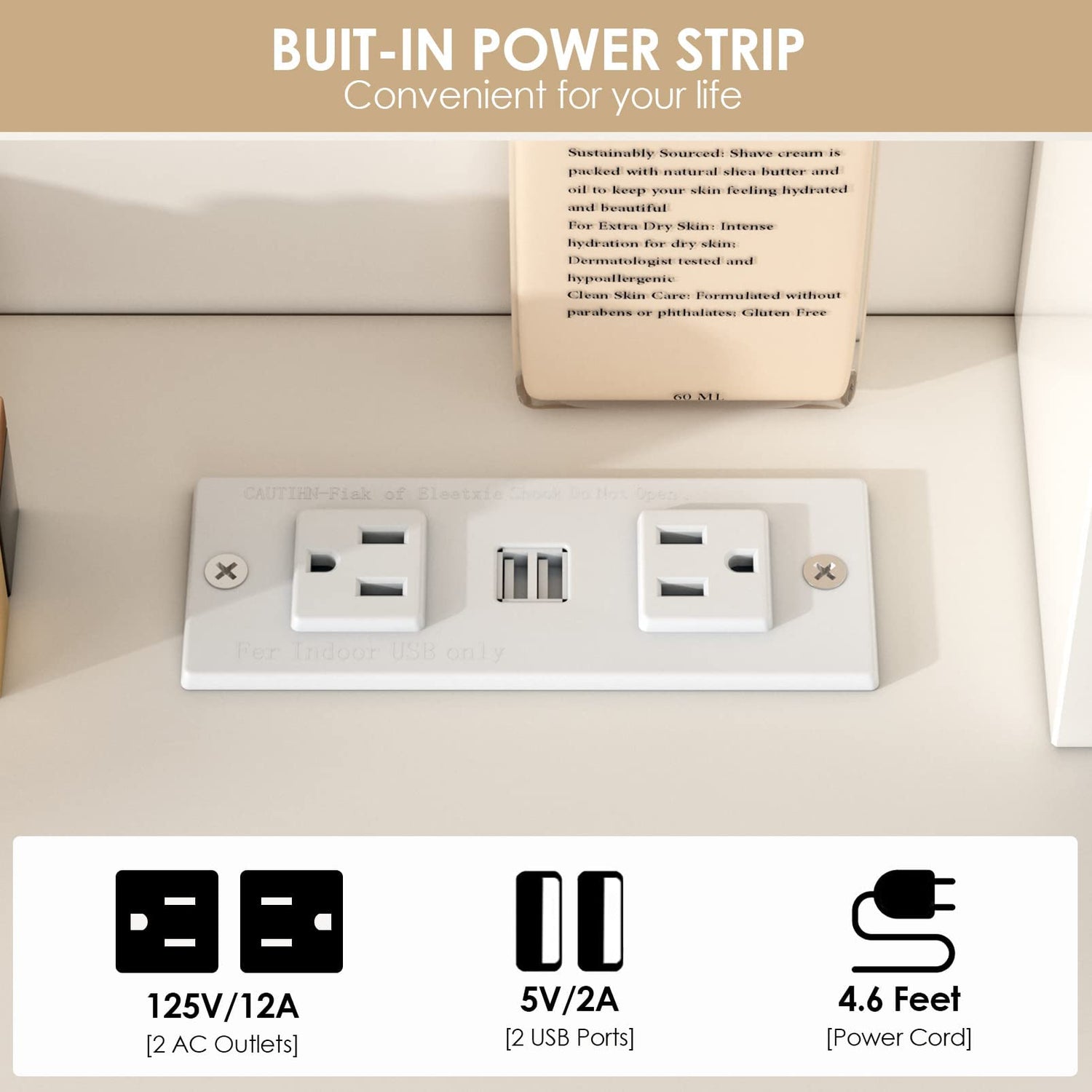 - 【Power Strip with USB Ports & Outlets】This make up table has 2 standard plug sockets and 2 USB ports, which can be more convenient to connect your hair dryer, and curling iron, and it can also charge your phone, tablet or other mobile devices.The unique design is more convenient for you to use.